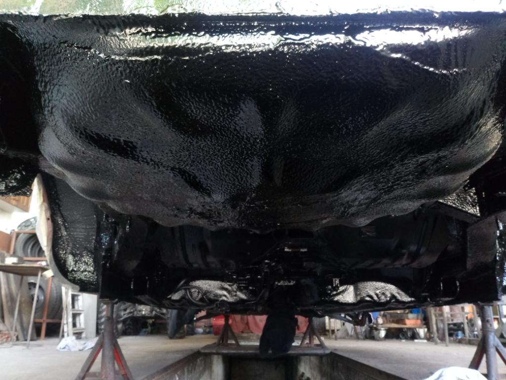 Po tych zabiegach przyszedł czas na konserwację. Po oczyszczeniu całego spodu został on pomalowany farbą corizon a następnie wymalowany środkiem do konserwacji podwozia firmy BOLL. Jest on trochę droższy ale powiem szczerze, zapach a właściwie jego brak po zabiegu w porównaniu do tańszych środków, które śmierdzą jeszcze kilka tygodni po malowaniu jest bezcenny. (Skąd to wiem? Po skończeniu mojego, kolega robił na warsztacie inne auta właśnie tanimi preparatami - na życzenie klienta, żeby nie było - i tamte auta czuć było z daleka jeszcze długo)