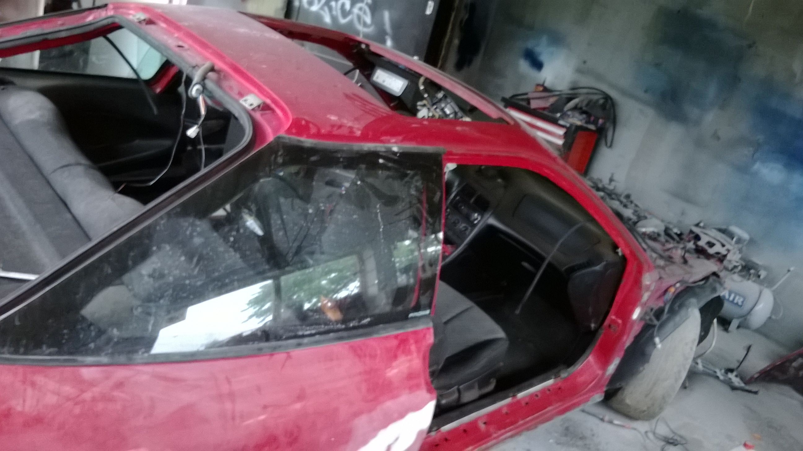 Skończyło się na tym, że autko przeszło kompletny remont blacharki. Wstawiono nowe progi, nowy lakier z palety bmw- japanrot+bezbarwny, dziurawy szyberdach został połatany, wszystkie wgniotki zlikwidowane, usunięte kierunki z błotnika, zderzak przód- usunięcie zbędnej blachy, tył został zmieniony na 93' US wersja california (brak tylnej wycieraczki), felgi odświeżone- kolor z palety lamborghini- nero noctis, dołożone światła dzienne.