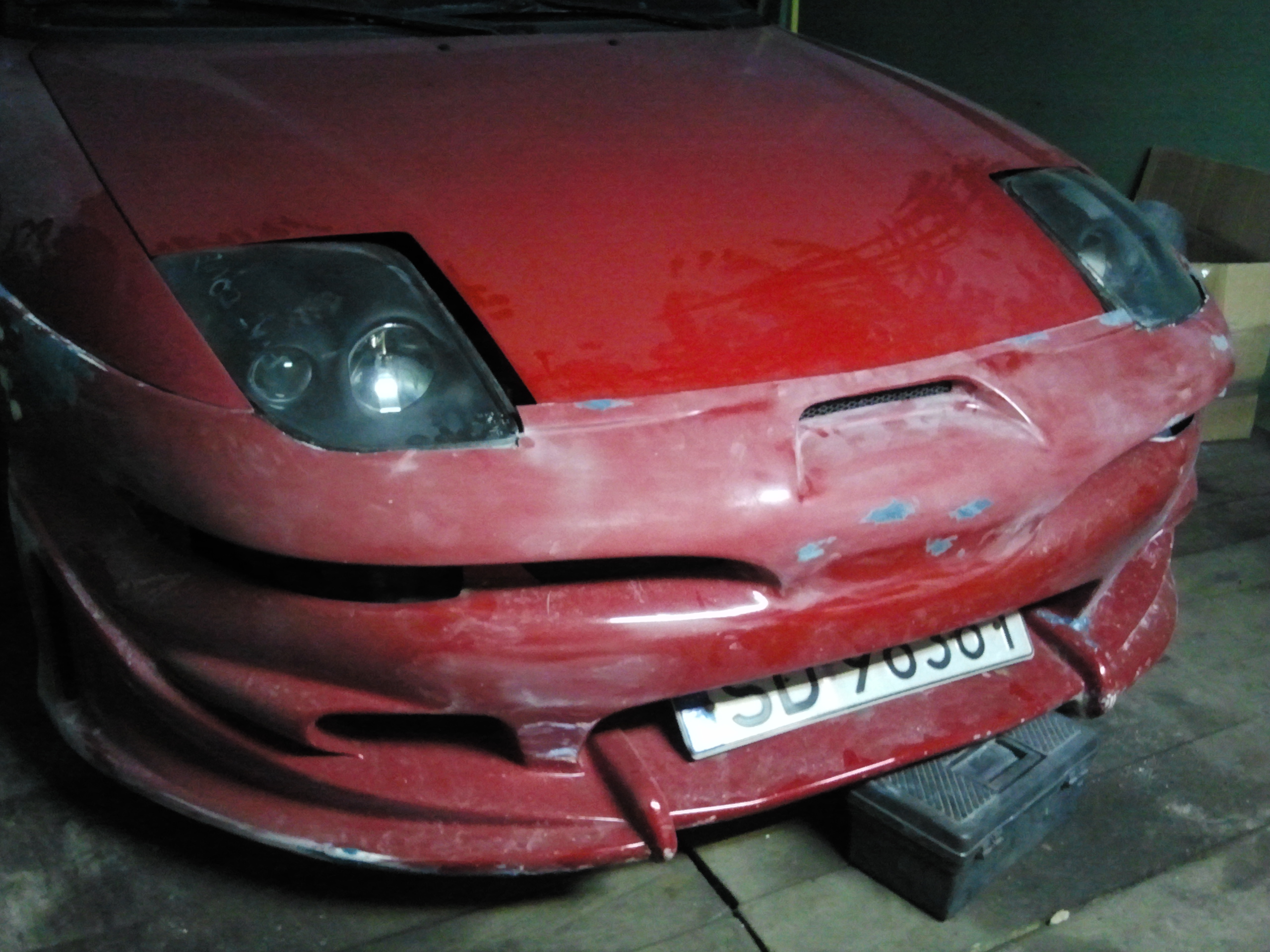 Na poczatku mialy isc swiatla z toyoty celicy II ale za duzo bylo przerabiania pod maska, miedzy innymi waz od chlodnicy , zbiornik od wspomagania , akumulator wiec szukalem innych lamp i trafilo na fiata coupe spasowanie bylo lepsze ale nie idealne bo maja dosyc specyficzny ksztalt i wielkosc i zeby wygladaly dobrze byly duzo ciete zeby gleboko je osadzic do nadkola i zderzaka nie chcialem uzyskac efektu widocznych calych lamp wiec dalszym pomyslem bylo dospawanie maski zeby jak najwiecej zaslonila lampe.