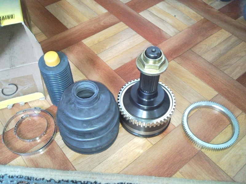 Paczka która do nas dochodzi, zawiera cały zestaw gotowy do montażu czyli: przegub, nakrętkę, pierścień zabezpieczający na półośkę, bardzo dobrej jakości osłonę gumową (miałem porównanie z osłoną za 35 zł z intercarsu), dwie opaski zabezpieczające oraz tubę smaru grafitowego.