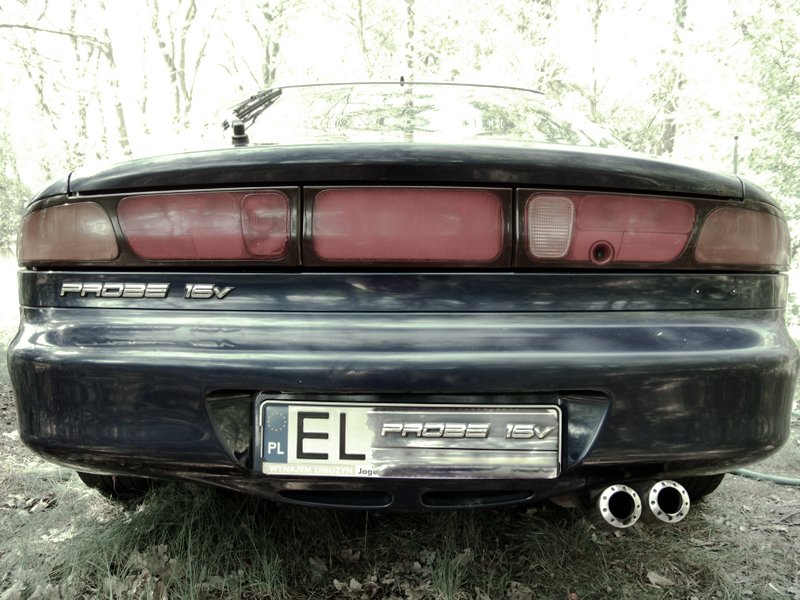 Dobrze że nikt nie powiedział że ja mu taką krzywdę zrobiłem w postaci dwu rurki! Poczytajcie za ile wytargowałem probka to wtedy zrozumiecie i krzta szacunku może się wtedy dla mnie też znajdzie. Auto miało już tak kiedy je adopotowałem... A jeśli chodzi o wydech to w przyszłości będzie jedno-dużo-rurka bo ja jestem z tych którzy lubią jak ładnie i miarowo "buczy" serduszko w moim probe - jeśli komuś to nie pasuje? to o gustach się nie dyskutuje!