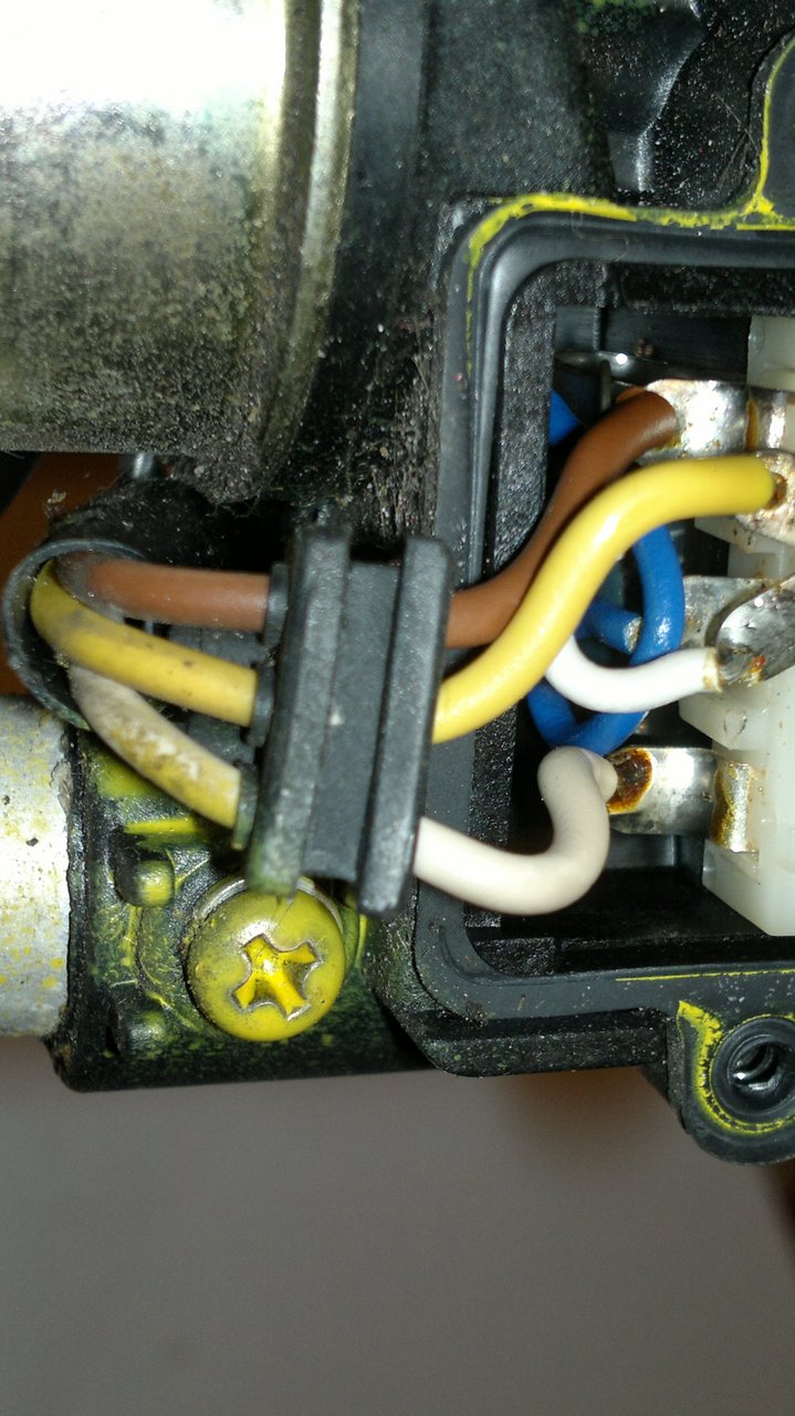 Te żółte kable i brązowy zapewne wchodzą do silniczka. Ale pewności nie mam.