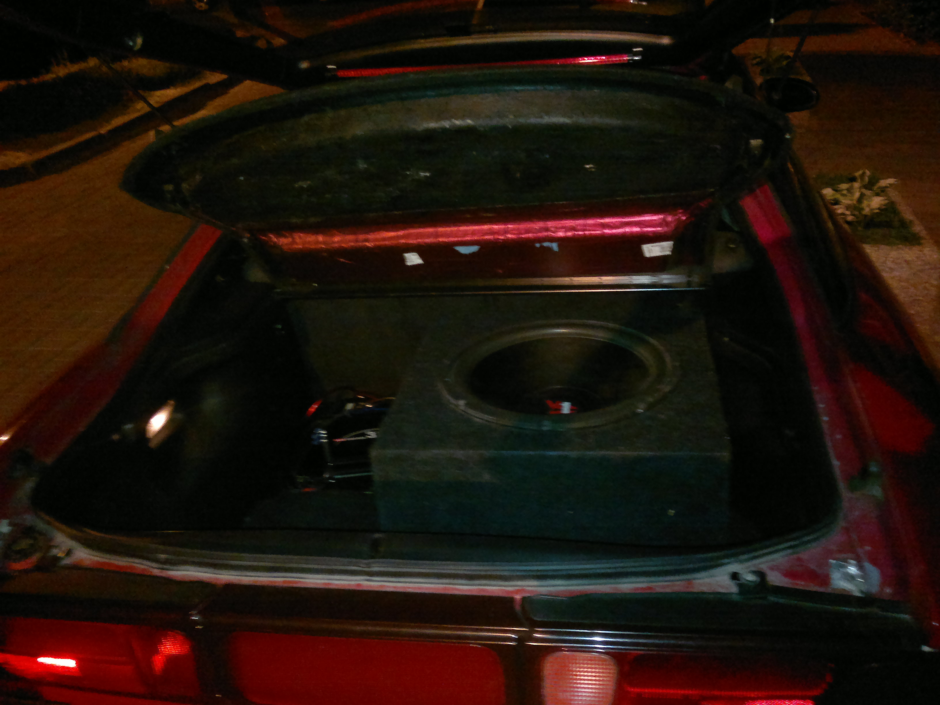 Stary sub (Lanzar max-12) zaczął mnie już denerwować- był nieco ospały, a poza tym skrzynia br mi nie pasuje. Stąd też nabyłem skrzynię na głośniku rockford fosgate punch 1418. Skrzyneczka ciśnieniowa, 111L, głośnik jednocewkowy, średnica głośnika...prawie pół metra :twisted: . Dokładnie 46cm. Pracuje ona pod wzmacniaczem monacor 500W w mostku. Póki co, widzę same zalety tej skrzyni, no, może poza jednym malutkim minusem- bagażnika obecnie prawie nie mam :mrgreen: .