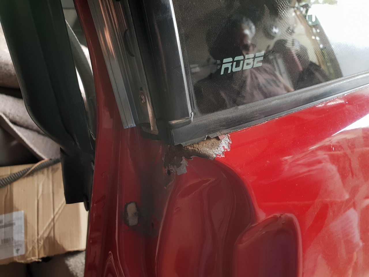 Prawy i lewy błotnik przód, nadkole prawy i lewy przód, nadkole lewe tylne, końcówki progów lewa i prawa strona tył, kielichy lewy i prawy przód, lewy tył, podłoga w miejscu nóg pasażera, nad belką tylną, okolice mocowania zawiasu lewych drzwi, krawędź przy szybie na słupku lewych drzwi, końcówka klapy tylnej, krawędź pasa tylnego, krawędzie dolne drzwi kierowcy.