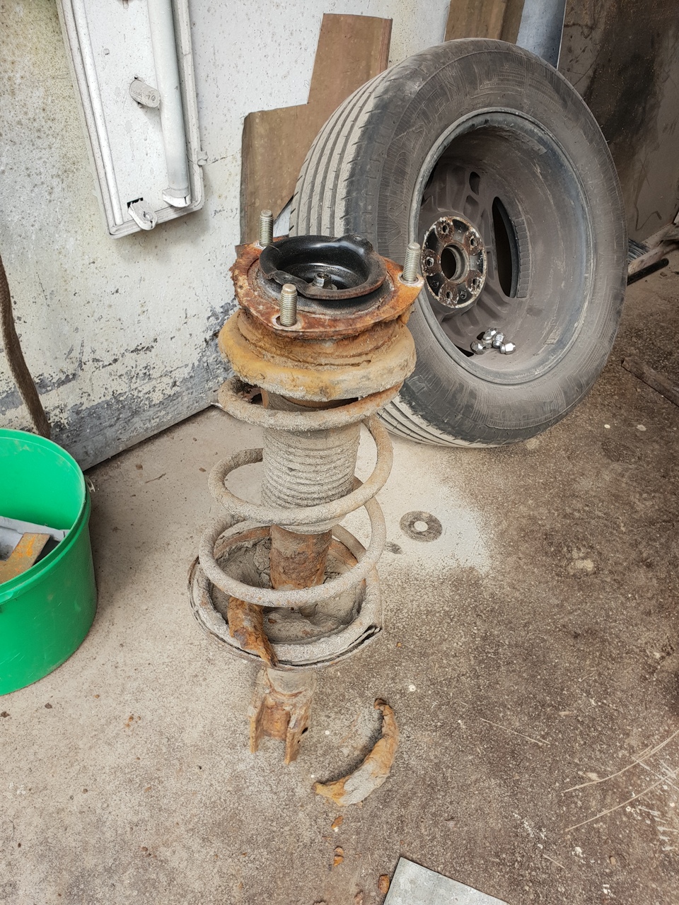 - wymieniony został na używany amortyzator lewy tył z regulacją (miałem w zapasie)- poprzedni był w stanie agonalnym, choć nadal działała regulacja