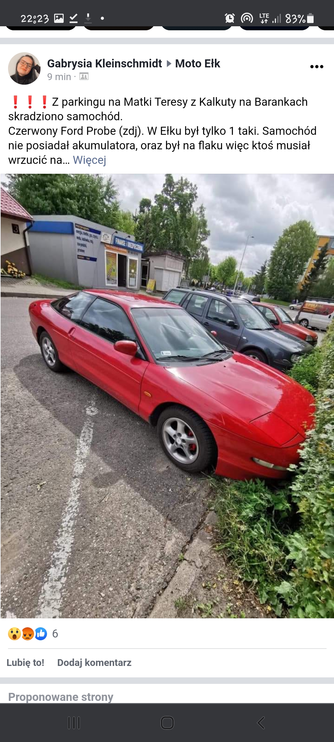 Wrzucam bo w moim mieście skradziono czerwone probe dwójkę, 2,0 z gazem. Ogólnie moj znajomy sprzedal to auto z rok temu i stało ciągle w Ełku. Jakby coś komuś zucilo się na uszy bo obecną właścicielka go szuka to dawać znać na priva.