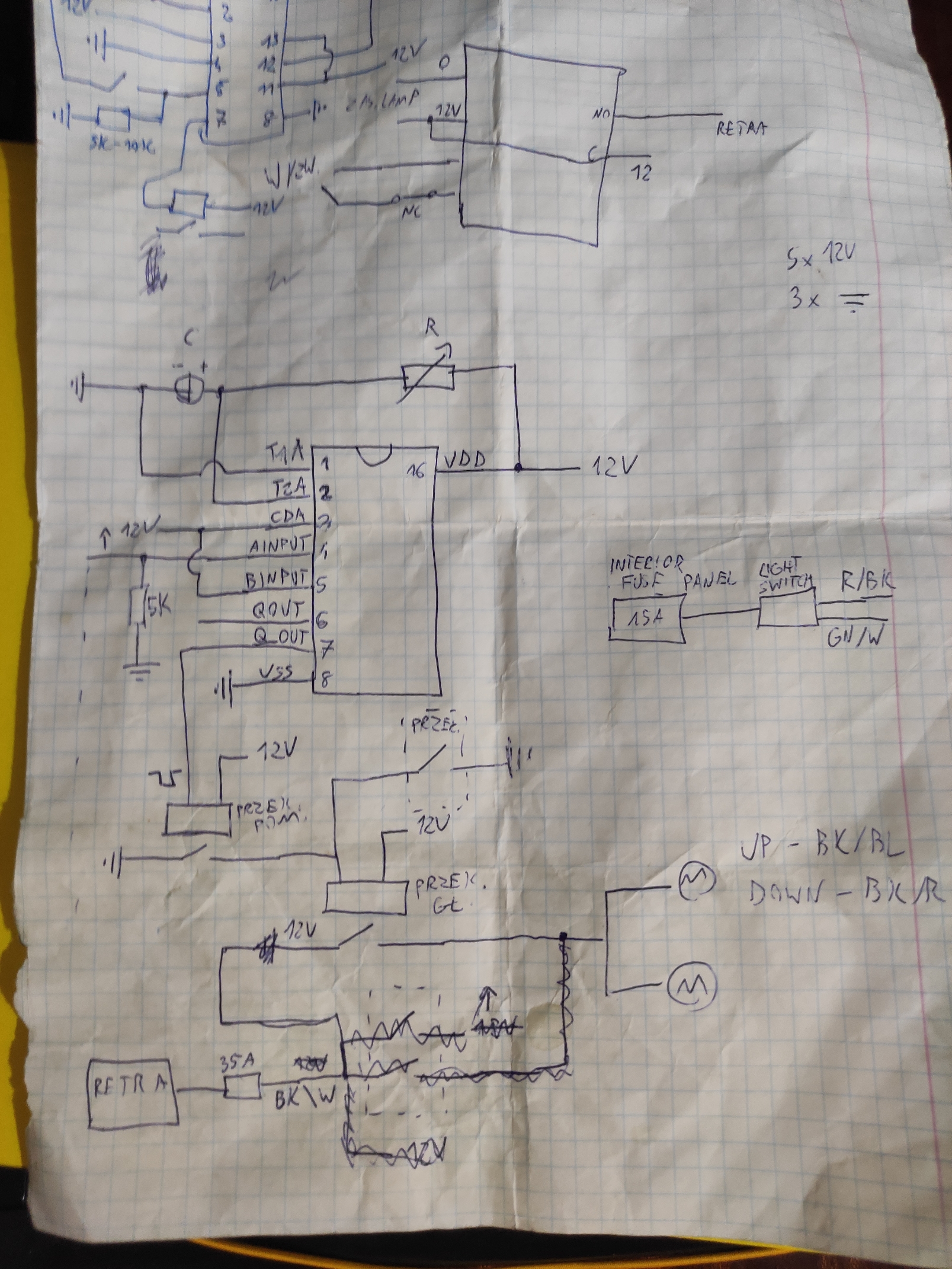 +12 po stacyjce (accessorry): niebiesko-biały przewód we wtyku C182 (drugi przekaźnik na podszybiu - accy relay).