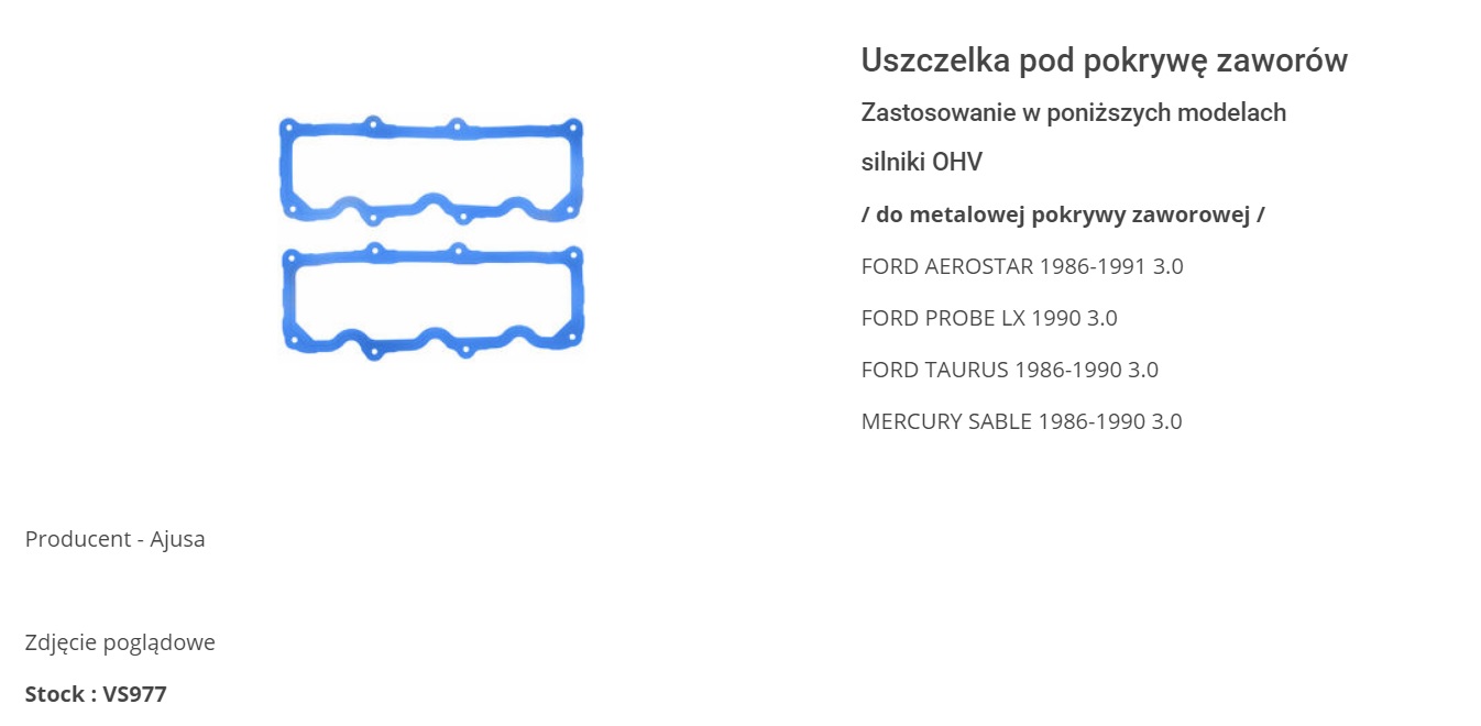 Uszczelka pokrywy zaworów do proboe 90rok. Później występuje już inna "okrągła" zależy to od tego jaką pokrywę zaworów się posiada. Jeżeli z wklęsłym napisem 3.0 V6 to taka jeżeli z nadlanym napisem to inna