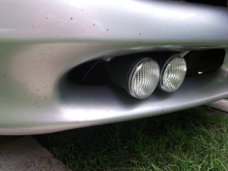 Jeżeli chodzi o to jak wygląda to patrz ostatnie zdjęcie, bo faktycznie na początku było gorzej gdy sterczały na zewnątrz. Docelowo pójdą jeszcze głębiej jak znajdę odpowiednie śruby do dorobienia dystansów. (z jednej strony wkręt plastik/drewno z drugiej śruba M4, całość o długości przynajmniej 80mm) No i przeciwmgielne będzie o jakieś 2 cm bardziej wysunięte niż dzienne.