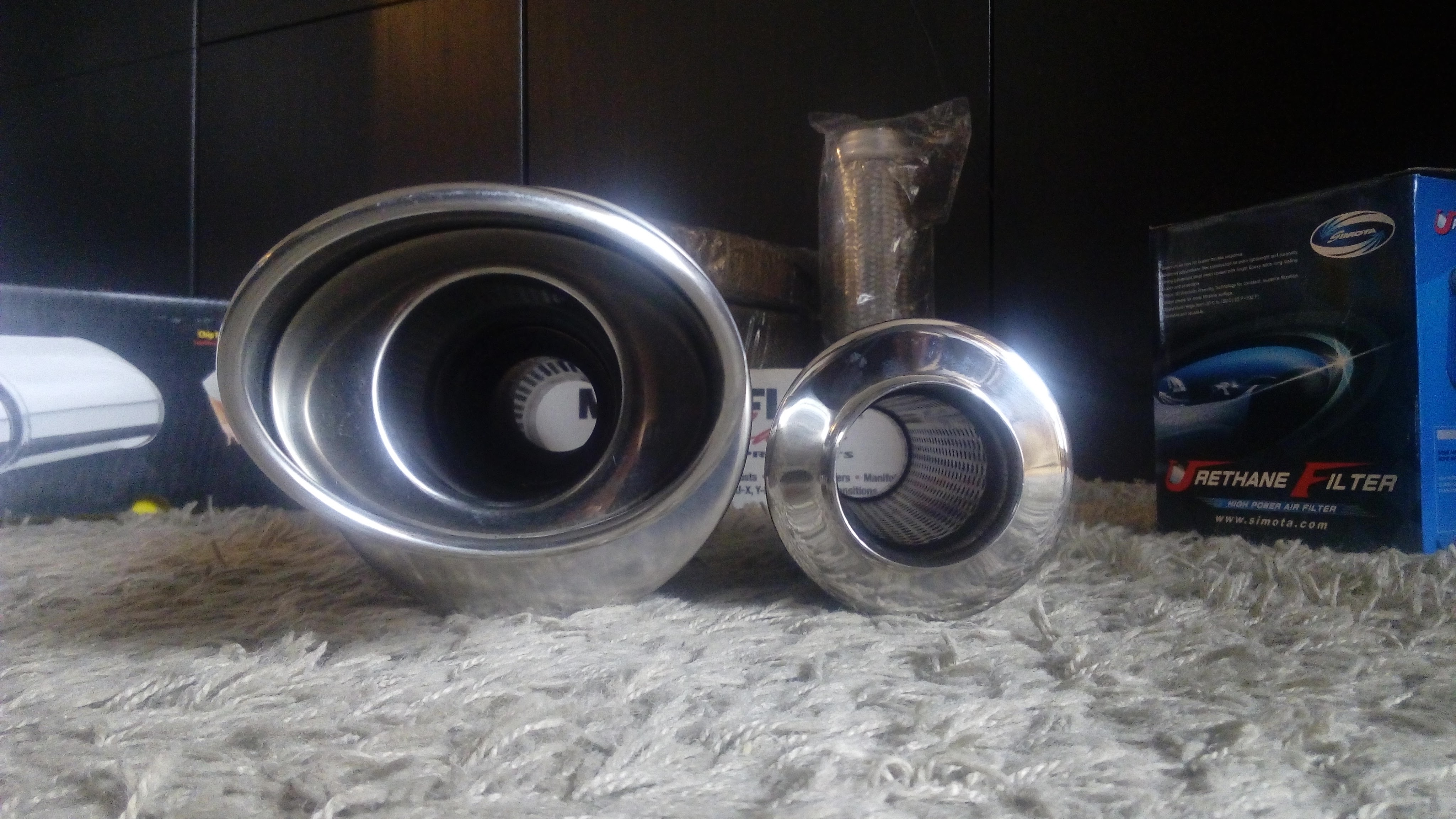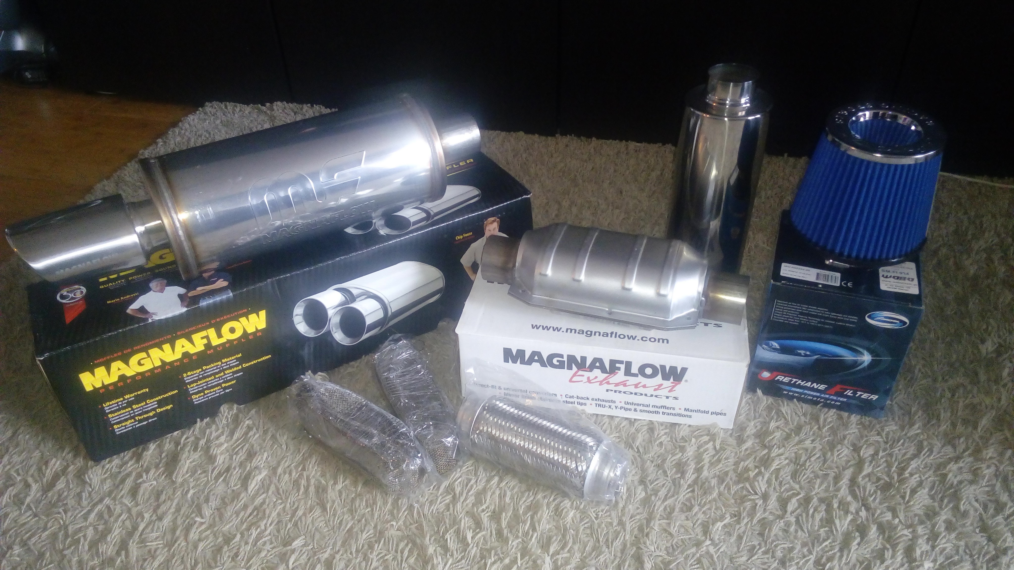 Miałem zamiast katalizatora montować tłumik ze zwężką, a zamiast tłumika środkowego strumienicę szczelinową, ale po dogłębnym przeanalizowaniu wszystkich za i przeciw stanęło na katalizatorze z metalowym wkładem, przelotowym tłumiku środkowym od TurboWorks i końcowym MAGNAFLOW. Już się nie mogę doczekać jak to zagra. Dodam, że tłumik końcowy ma homologację drogową, i jest podobno cichy. To się okaże. Całość jest pod średnicę 2,25 cala.