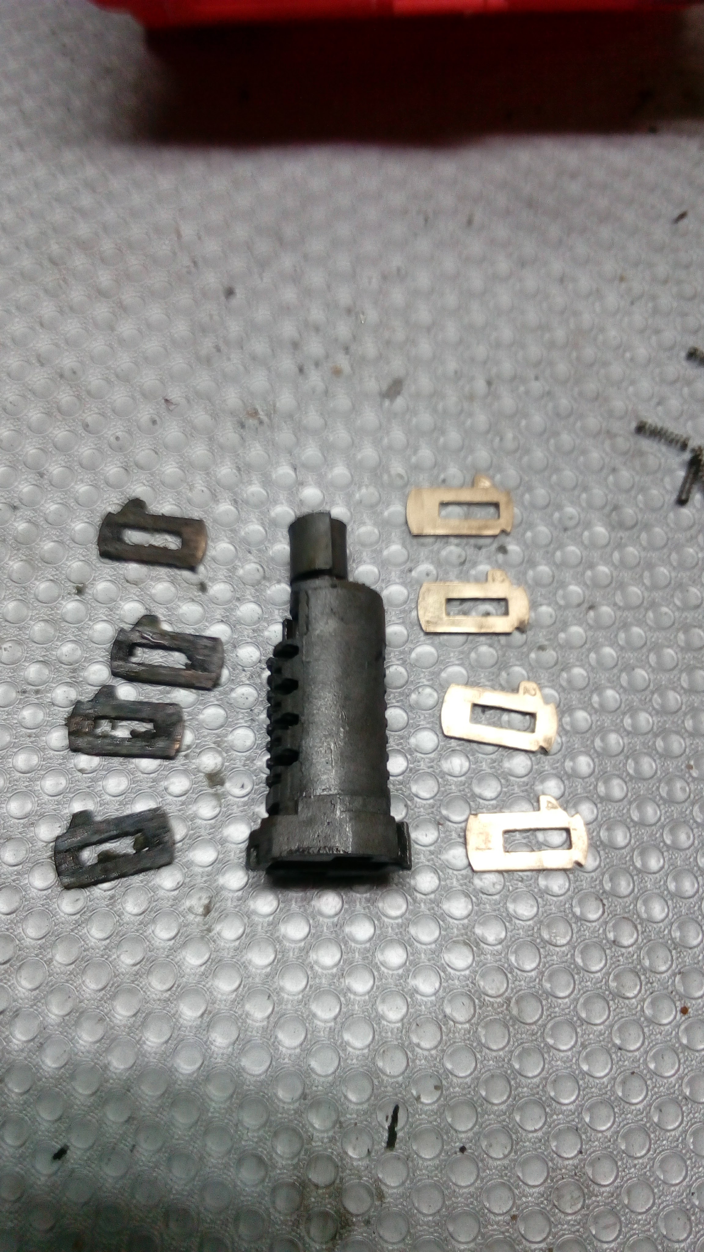 Dzisiaj regenerowałem wkład zamka od bagażnika. Był mocno zaśniedziały tak że nie było możliwości przekręcenia kluczyka.