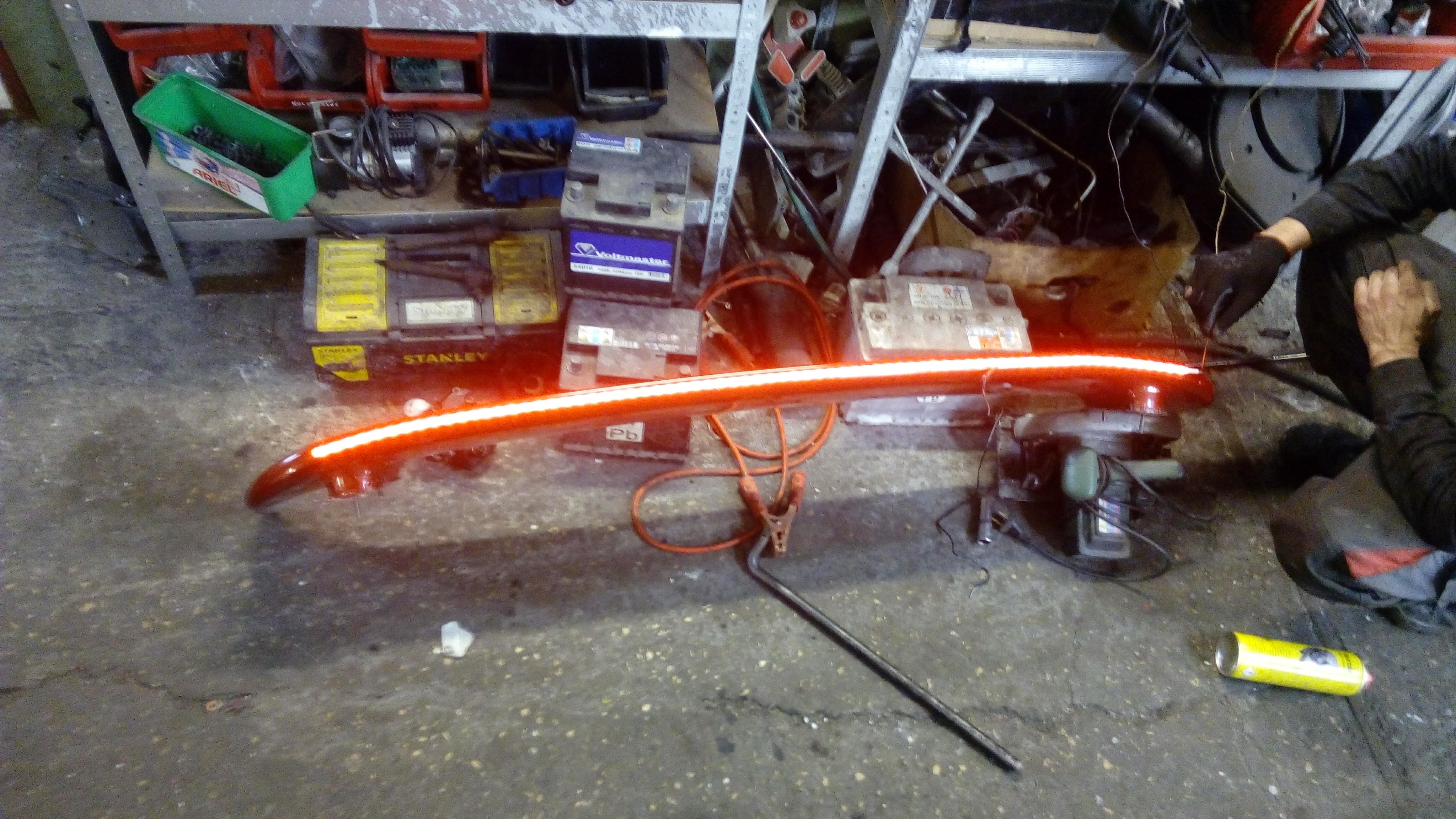 Jest to taśma led świecąca na czerwono, oczywiście nie będzie przyklejone na wierzchu. Wcześniej wyfrezowałem dremelem miejsce na taśmę.