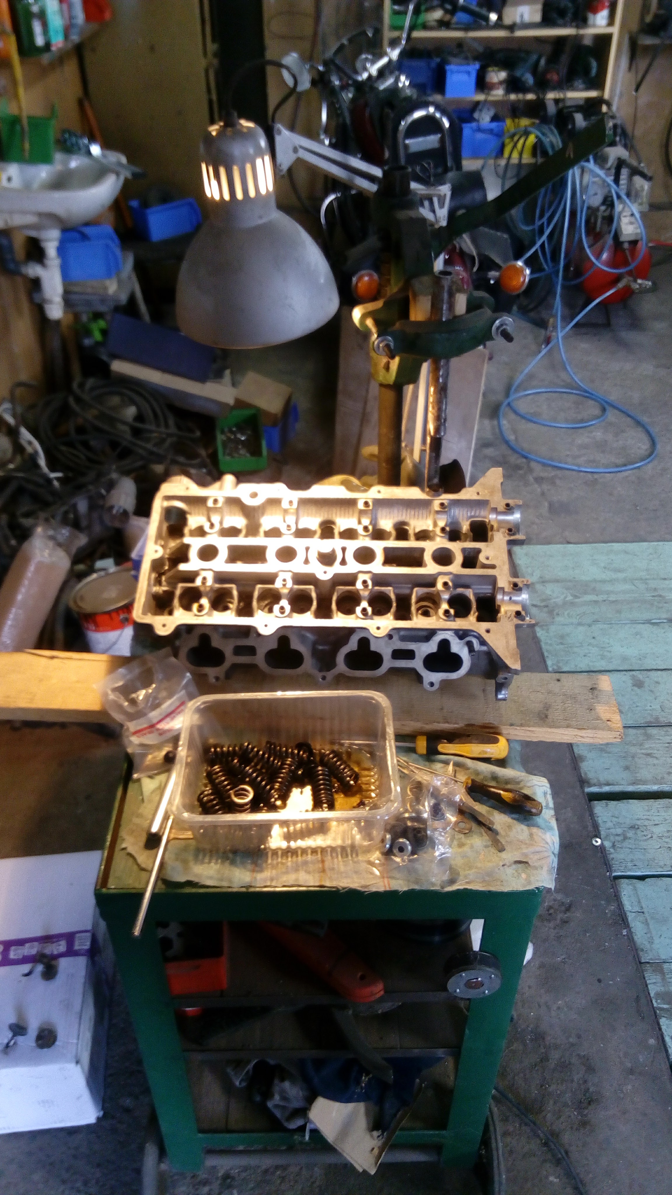 Głowica po planowaniu, dotarciu zaworów i sprawdzeniu szczelności. Tego ostatniego się najbardziej bałem po moich zabawach, ale jest wszystko ok. Teraz już jest ppskładana. Czeka tylko na dół silnika i miejsce gdzie zostanie całość zamontowana.