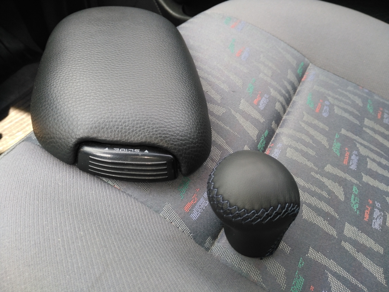 Nowa skóra na gałce zmiany biegów + niebieskie nici