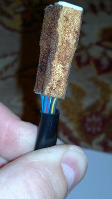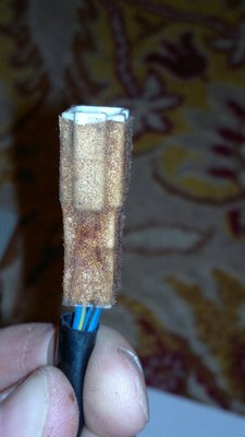 * odpięta kostka od anteny, z niej wychodzą dwie masy, dwa żółte, jeden brązowy... jeden żółty i ten brązowy ucięte tak jak na foto...wszystko zapakowane było i upchnięte w karoserii w jakiejś folii