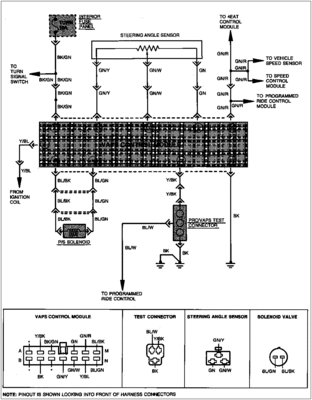 VAPS dostaje żólto-niebieskim (Y/BL) przewodem sygnał z cewki (zapłonowej). Wtyczka C314 styk L (gdyby komuś się nie zgadzało, to nieistniejący styk G we wtyczce też się liczy). Przy uruchomionym silniku po stronie modułu wspomagania powinno być minimum 10V - jeśli nie ma, to prawdopodobnie wspomniany przewód między cewką a modułem jest uszkodzony (oporność powyżej 5 omów lub zwarcie do masy, czyli między stykiem L (Y/BL) a E (BK/GN) mniejsza niż 10 kiloomów).