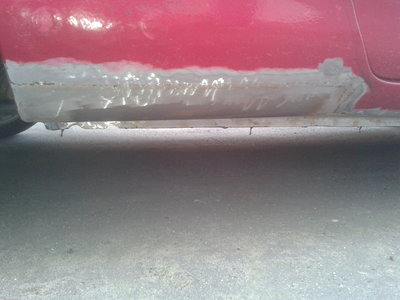 Po trzech tygodniach pobytu u Pana chirurga mój wóz w końcu jest już na moim podwórku . Gościu wyspawał mi ładnie progi i jedną dziurę w podłodze o której istnieniu nawet nie wiedziałem . Kupując probka nie spodziewałem się że ma aż tak skorodowane progi no ale z drugiej strony auto ma już swój wiek. Na dniach będzie robiona konserwacja podwozia , zakładanie sprężyn od V-ki , wymiana elastycznych przewodów ham. i wyciszanie wnętrza samoprzylepną matą alubutylową . przy okazji wyciągania tapicerki założyłem rozpórkę na tył.