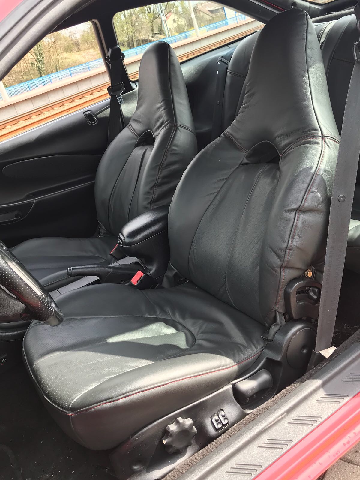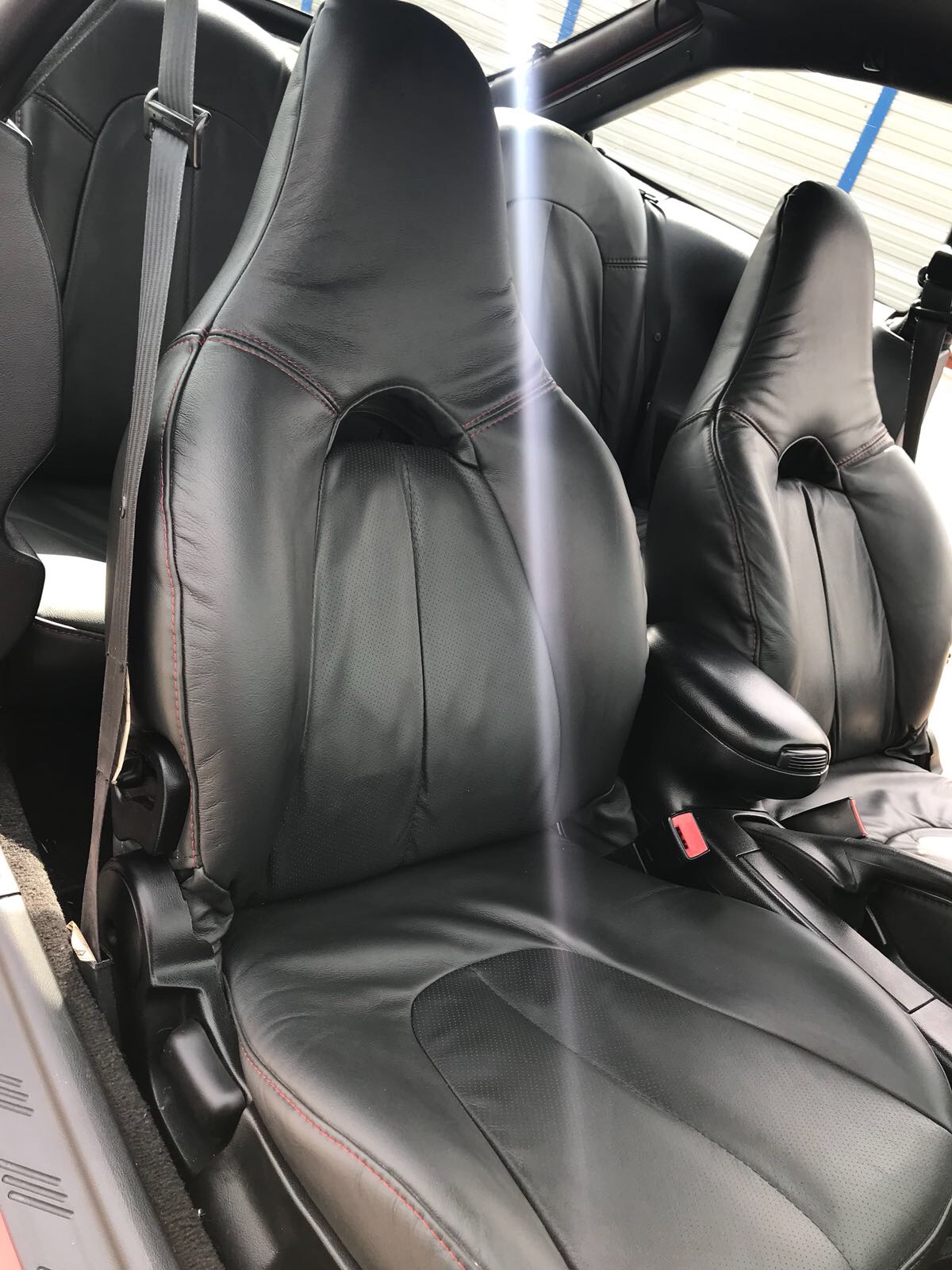 - Ciemnoszara wentylowana skora przeszywana czerwoną nicią. (robiona na zamówienie)
