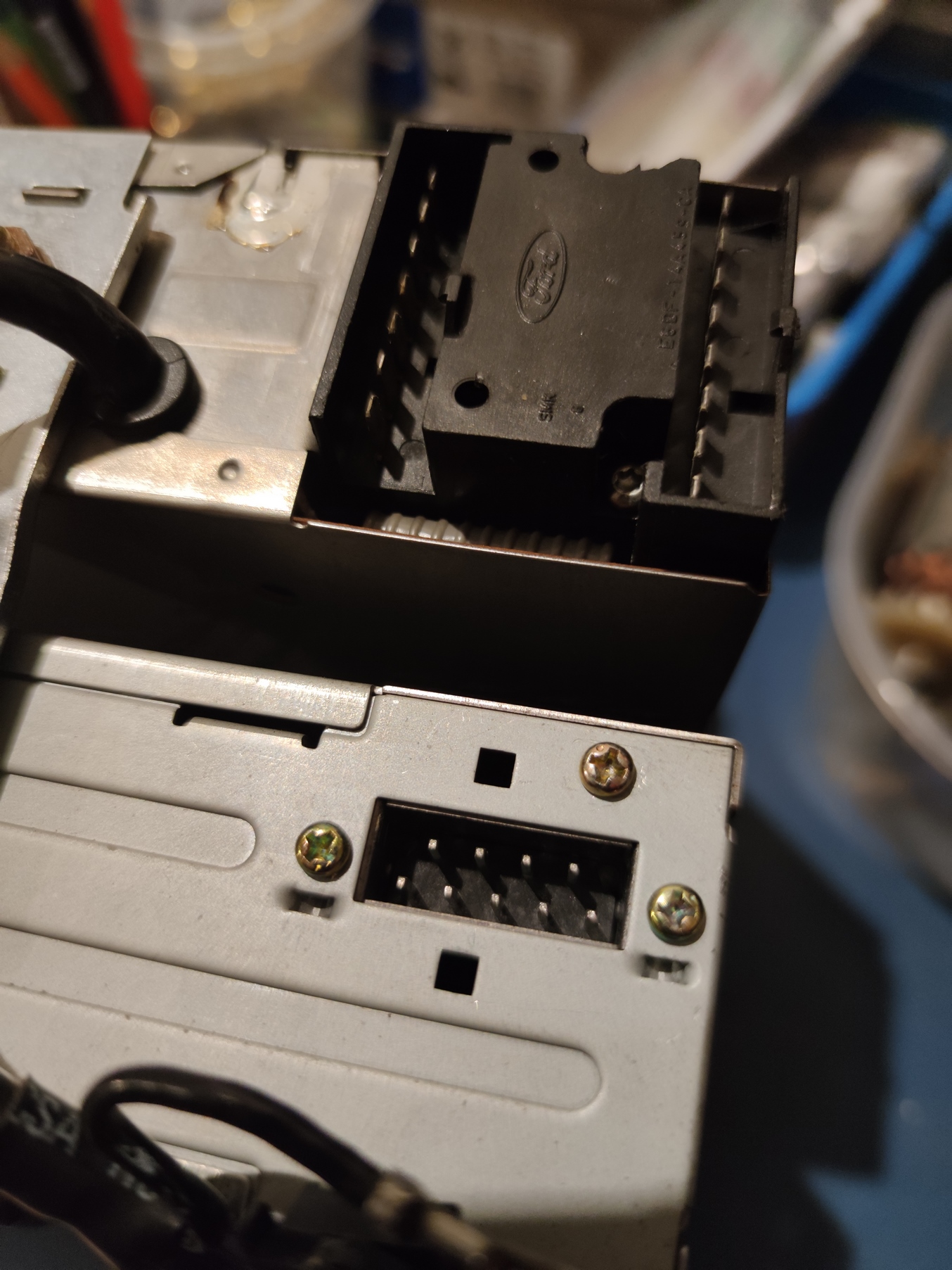 Radio podłączone solo pracuje bez problemu. Podłączając oryginalne złącze radia do oryginalnego CD wszystko milknie.