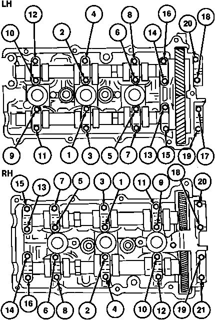 Jaki jest schemat (kolejność) dokręcania łożysk ślizgowych wałków rozrządu w naszych V6