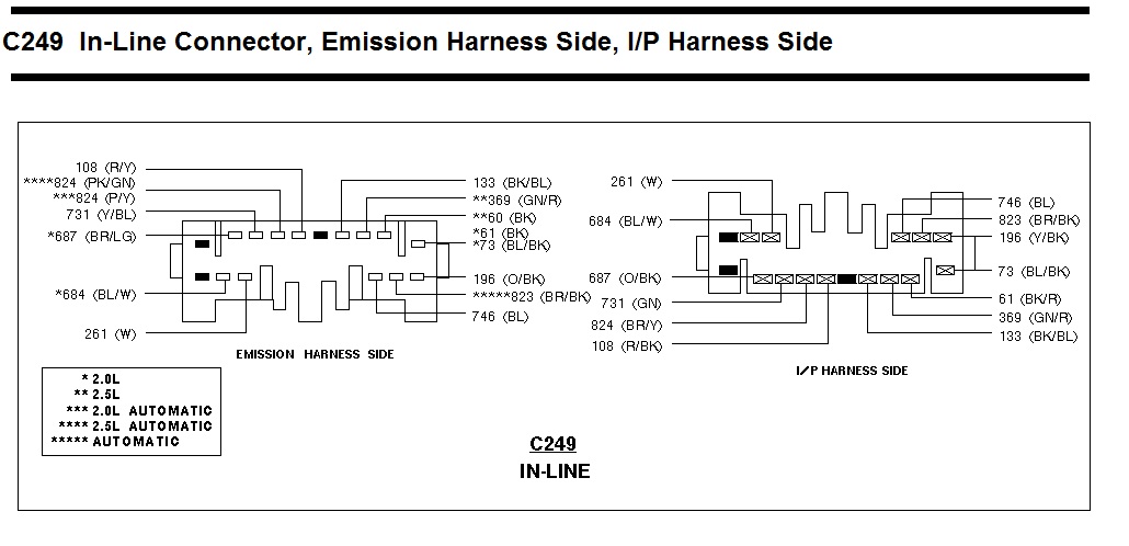 Ford – jeden rozdaj wtyczki zunifikowany dla A/T i M/T wygląda jak ta z 1993 M/T
