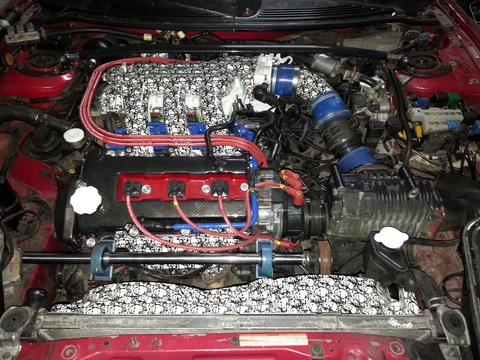Witam ładnie to zaczyna wyglądać pod maską:) ile chcesz mocy uzyskać z kompresorem? tylko ciekawe czy wytrzyma silnik?.. ale gratuluje pomysłu:D