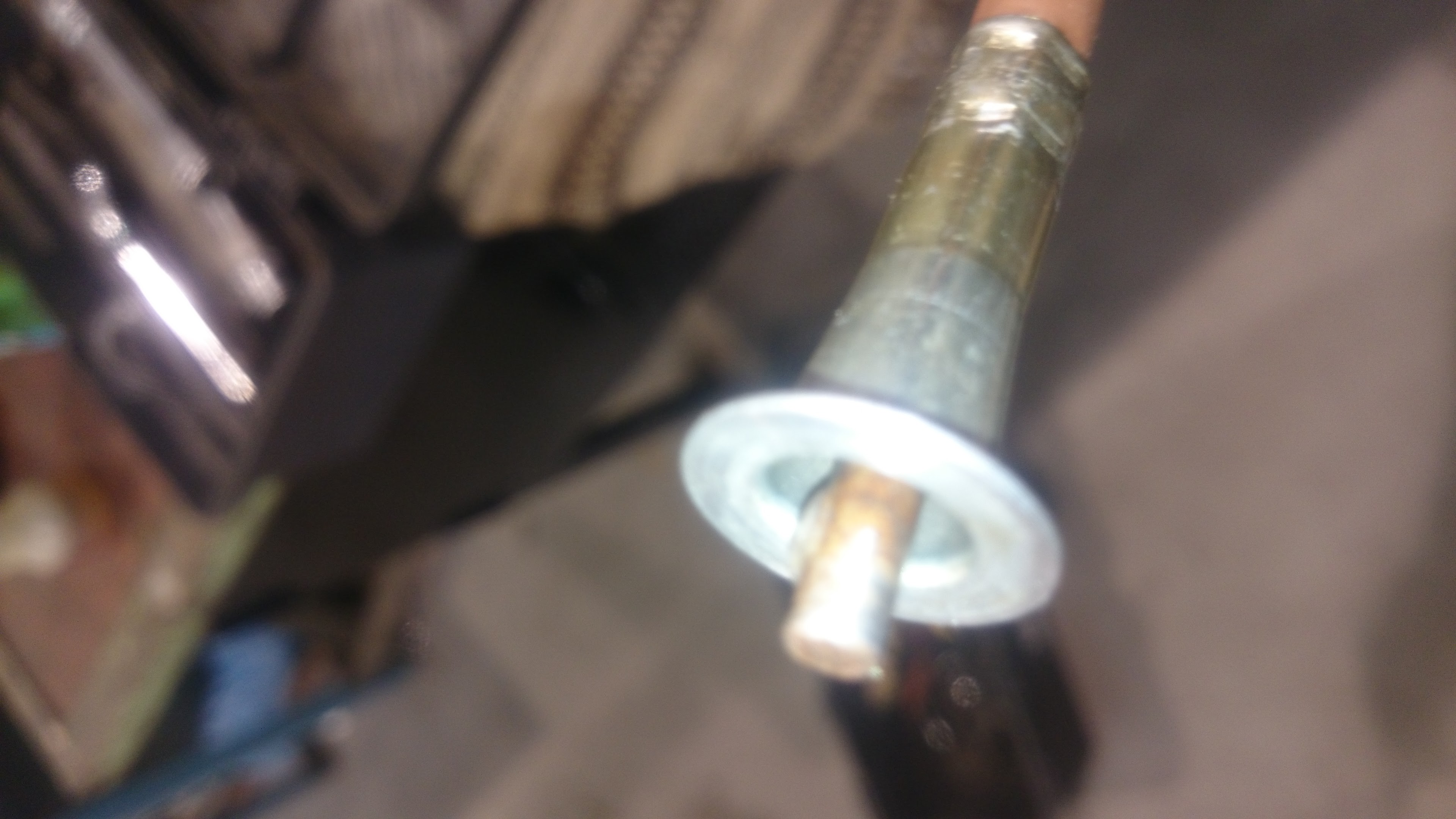 Jak widać na zdjęciu - trzpień wchodzący w ślimak jest zbyt głęboko - jedyny winowajcą jest metalowa nasada która przy ciągnięciu została lekko obsunięta. BIerzemy szczypce kombinerki etc i delikatnie próbujemy rozruszać ten element - ja psikłem cx żeby nabrało poślizgu i wziąłem klucz oczkowy 18 i uderzałem w nasade tego metalowego kołnierza żeby wszedł głębiej na linkę - poskutkowało. Na początku za dużo nabiłem - czego efektem był problem z doleganiem plastikowej uszczelki/dystansu który jest na końcu.