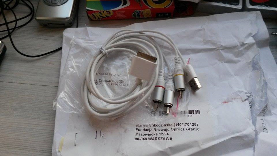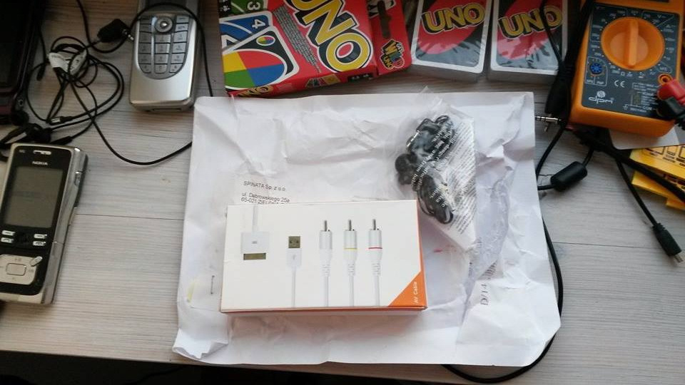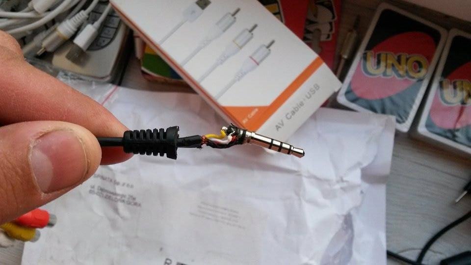 Oryginalny kabel Alpine KCU-461iVhttp://www.salonydenon.pl/pl/MM/Marki/A ... /KCU-461iV mnie ropucha udusiła kupić za 50 $ i zacząłem szukać innego rozwiązania.Myślałem znaleźć coś takiego PodBreakouthttp://www.makertronic.com/podbreakout- ... kout-board ,ale też cena i wysyłka nie ucieszyła. Kiedy już całkiem oszalał od zabaw Alpine i był gotów kupić oryginalny kabel, widziałem taki kabel Kabel AV do TV USB złącze iPhonehttp://allegro.pl/kabel-av-do-tv-usb-zl ... 7d1b038eeb można zamówić z aliexpress , postanowiłem spróbować go przerobić