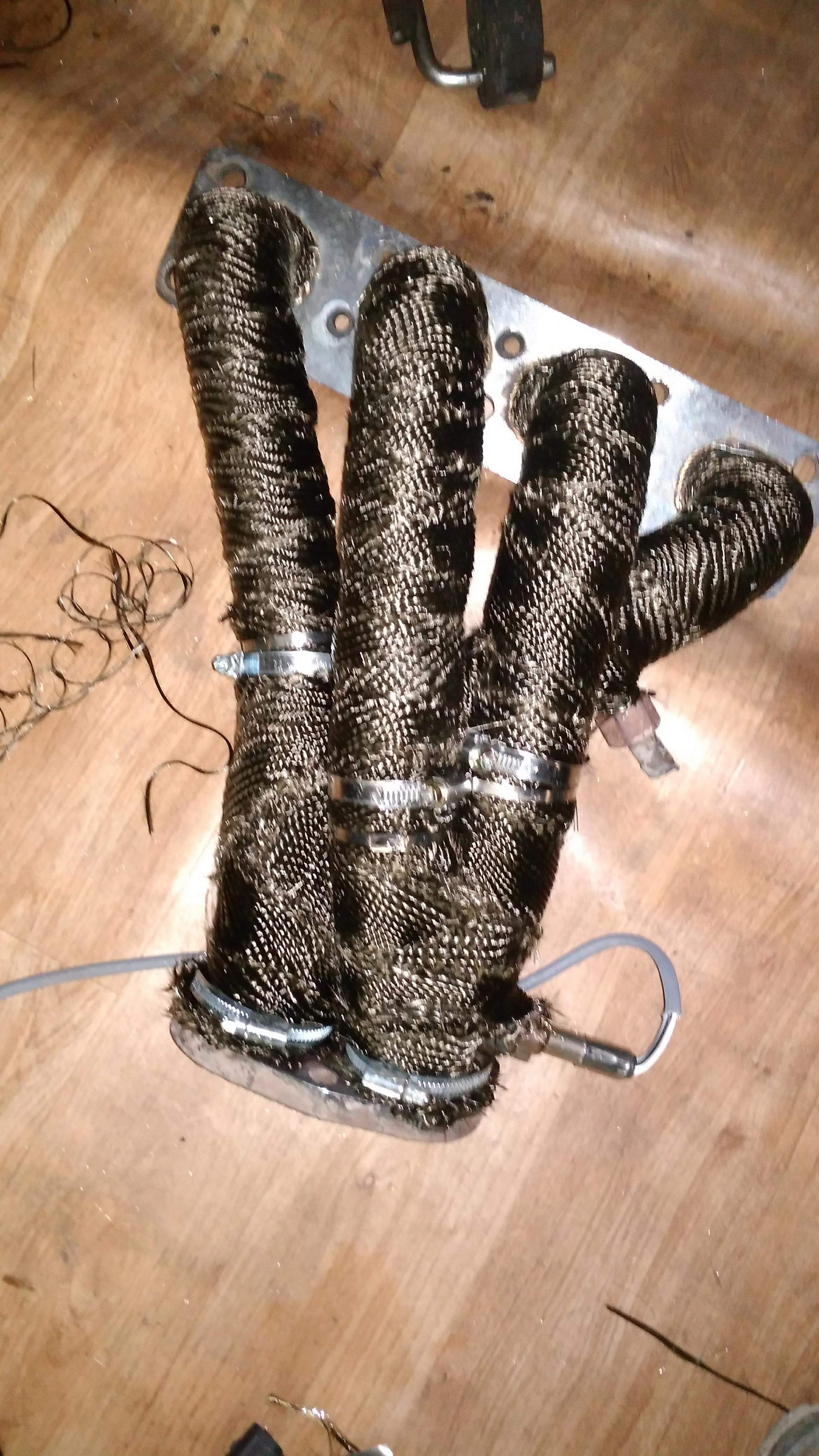 W związku z tym, że pogoda nie sprzyja grzebaniu w nieogrzewanym garażu podziałem trochę na strychu. Kolektor 4-2-1 zyskał nowy bandaż termiczny, na całe przedsięwzięcie zużyłem 20 m no i zeszły mi jakieś 3 godziny. Końcowy odcinek kolektora robiłem z resztek więc estetyka trochę kuleje:)