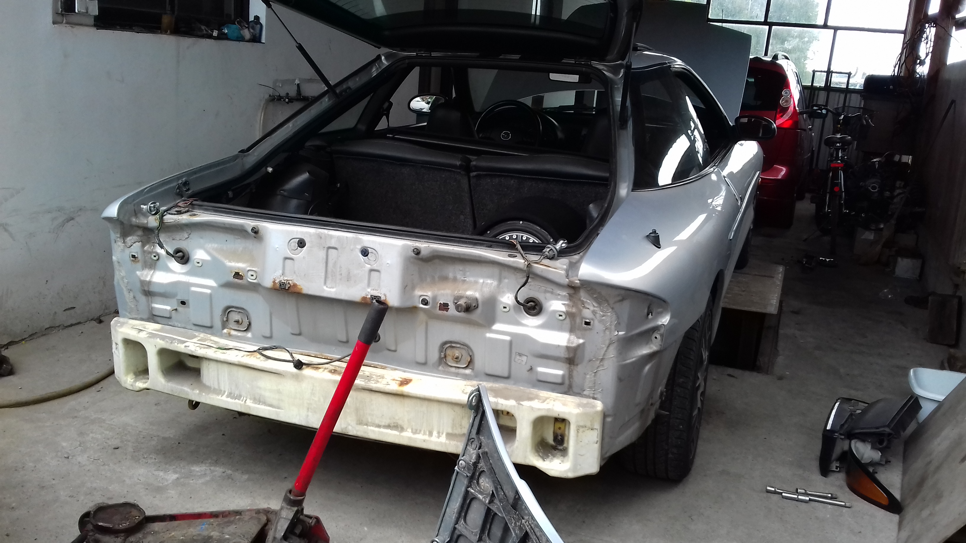 Tylny zderzak zmieniony na USA, customowe podświetlenie tylnej tablicy, wyrobienie nowej tablicy, zmiana końcówki wydechu na bardziej pasującą do Probe, lusterka zmienione na USA, krótkie daszki też wymienione na ładniejsze, dłuższe. Dodałem niebieskie oświetlenie na nogi i dałem trochę życia pod maskę