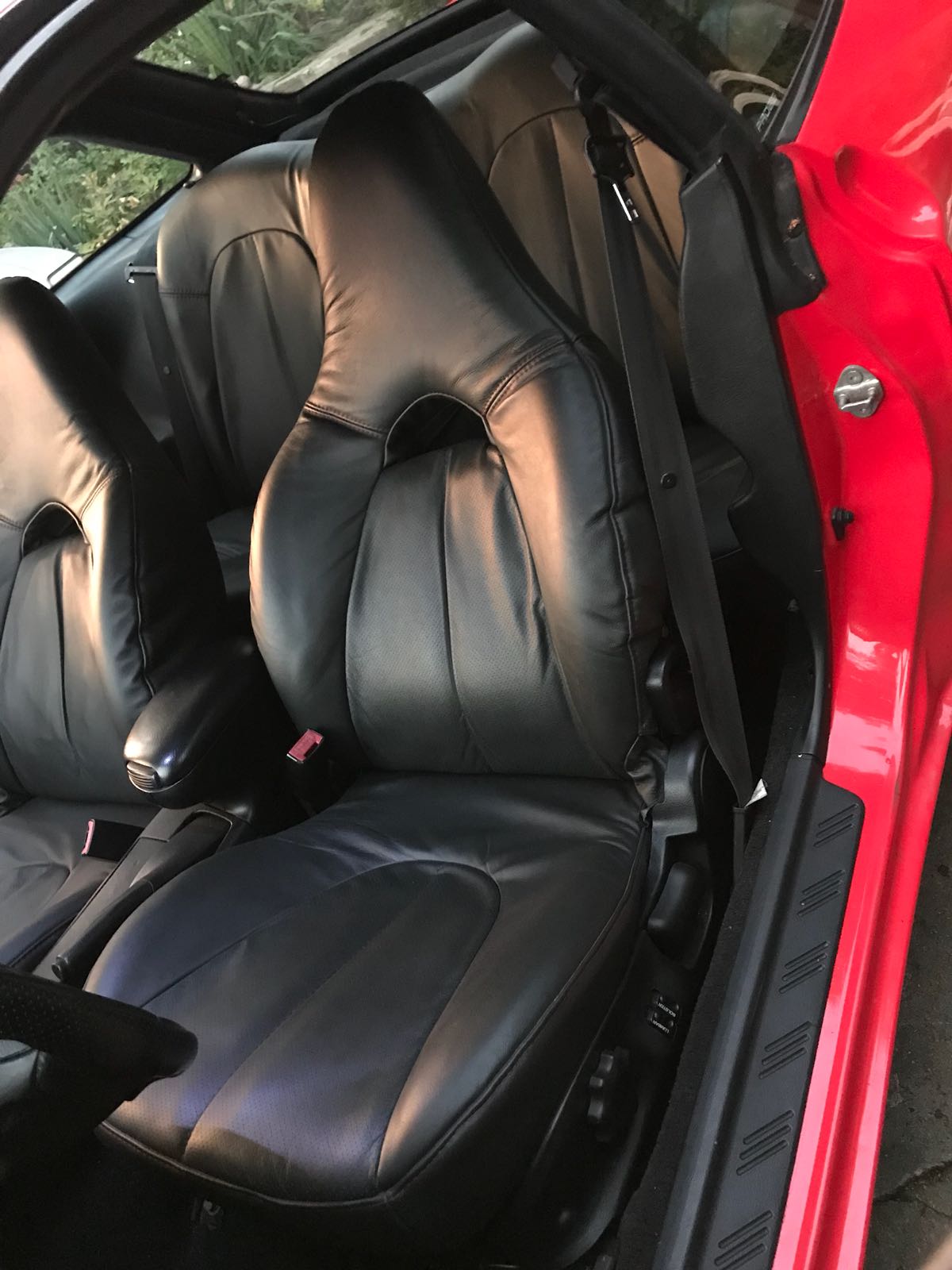 - Ciemnoszara wentylowana skora przeszywana czerwoną nicią. (robiona na zamówienie)
