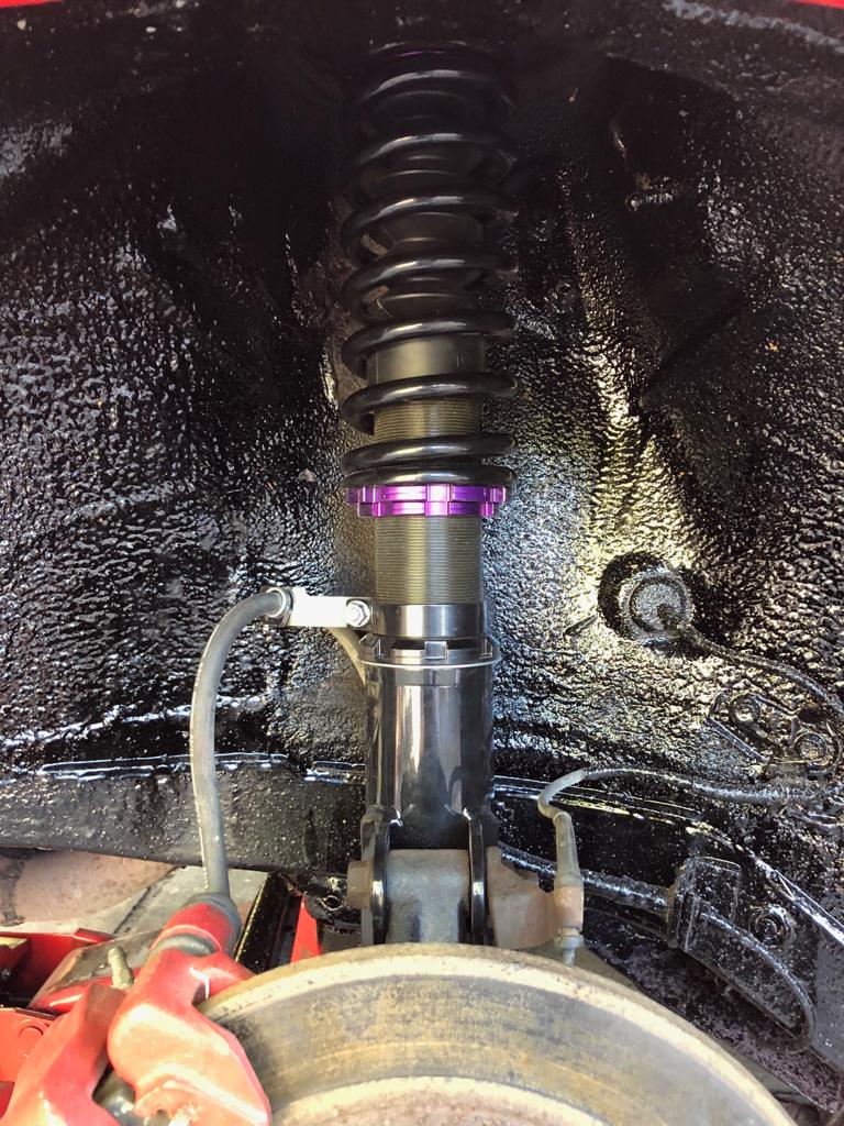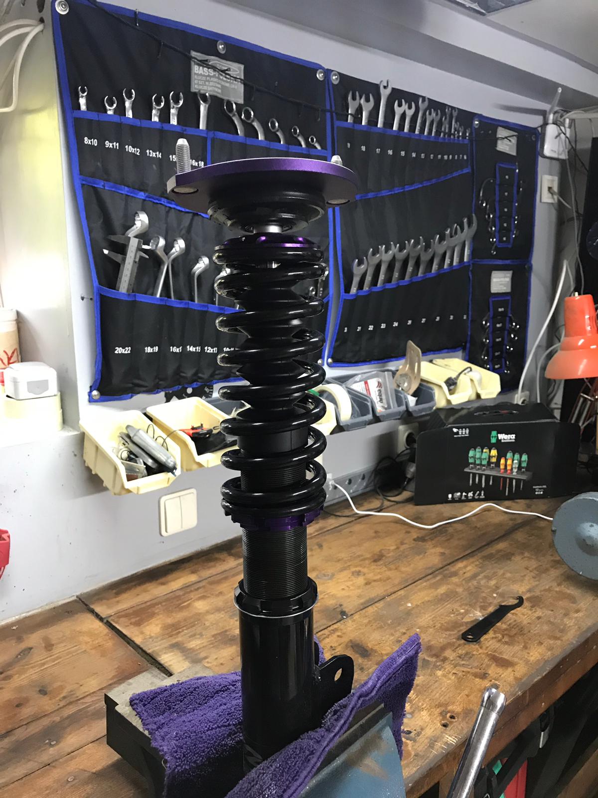 Teraz coś na co trochę czekałem, mianowicie zostało założone nowe zawieszenie gwintowane od d2Racing. W porównaniu do uklepanych sprężyn mts, jeździ się elegancko. Nawet na większym obniżeniu. Jeszcze czeka mnie wiele opcji/prób regulacji, żeby znaleść idealny kompromis pomiędzy glebą a komfortem jazdy pod siebie.