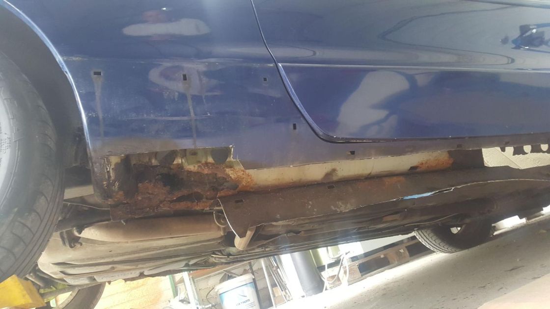 A więc ruszyliśmy. Okazało się podczas wycinania prawego progu ze środek wraz z wzmocnieniami już nie istnieję, więc próg będzie cały nowy.
