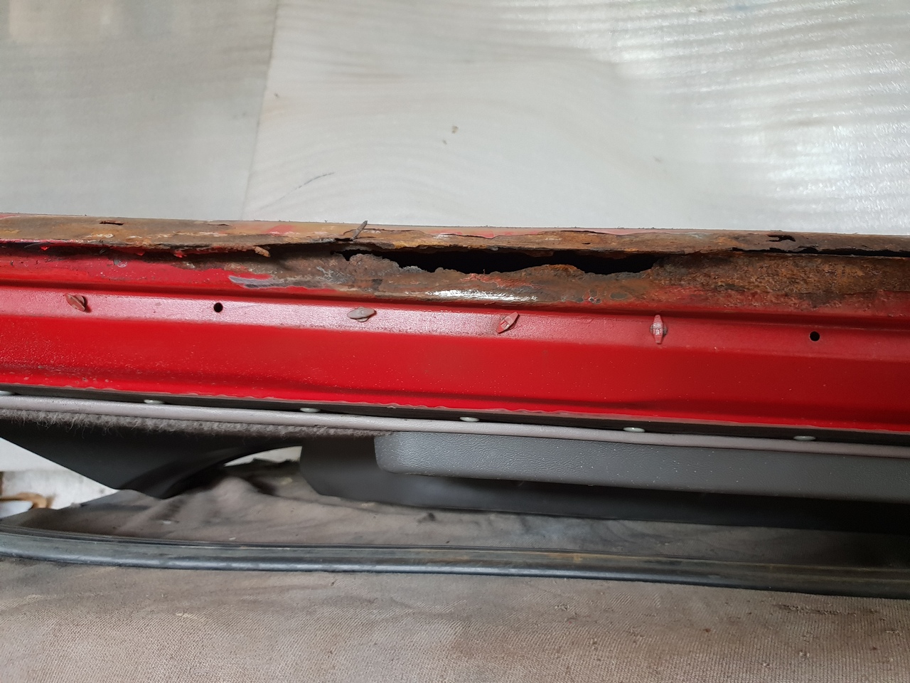 Prawy i lewy błotnik przód, nadkole prawy i lewy przód, nadkole lewe tylne, końcówki progów lewa i prawa strona tył, kielichy lewy i prawy przód, lewy tył, podłoga w miejscu nóg pasażera, nad belką tylną, okolice mocowania zawiasu lewych drzwi, krawędź przy szybie na słupku lewych drzwi, końcówka klapy tylnej, krawędź pasa tylnego, krawędzie dolne drzwi kierowcy.