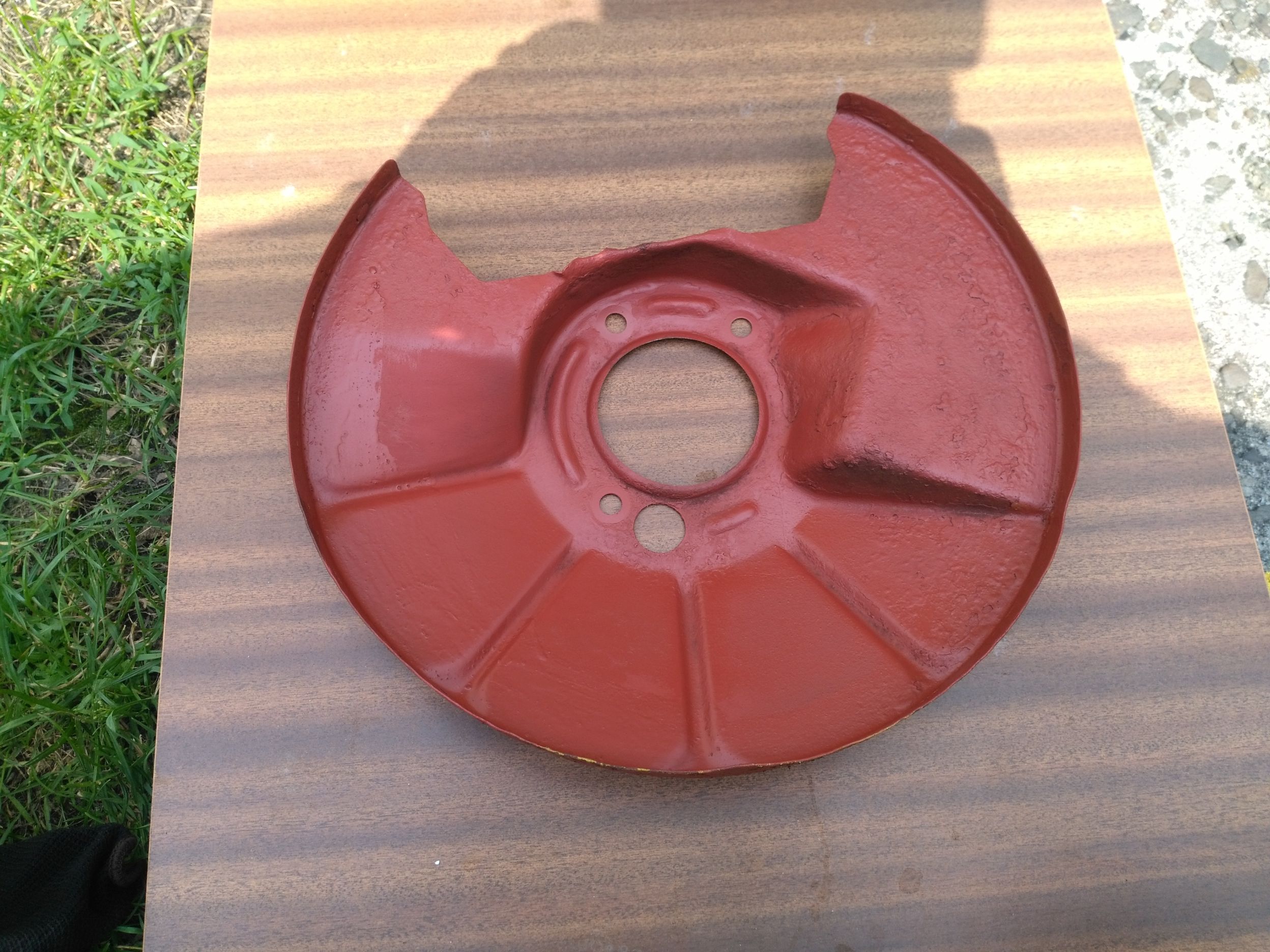 Niestety farbę końcową szlag trafił bo nie potrzebnie rozrobiłem ją całą z utwardzaczem i kauczuk się zrobił ;(, po wypłacie zakupię jeszcze jeden zestaw i dokończę już wszystko. Przy okazji zdemontowałem piastę aby obejrzeć łożysko i dostać się do osłony tarczy.