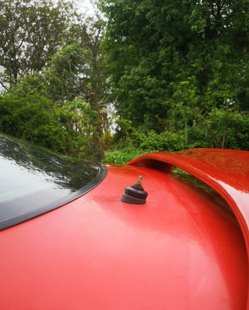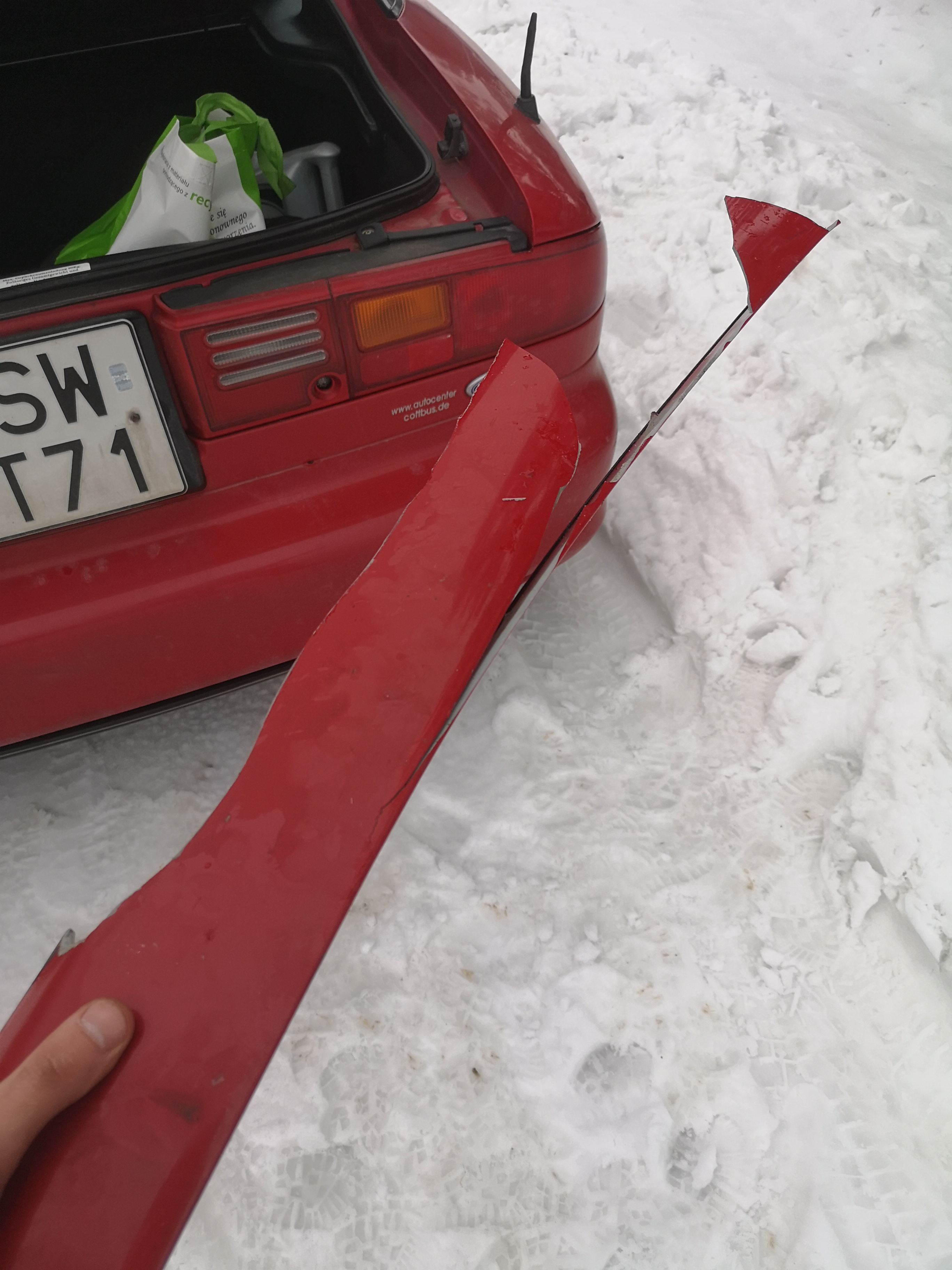 Na chwilę obecną chcę się zająć tylną klapą, ponieważ pod jednym z mocowań spojlera zaczęła się zbierać woda i niestety wyszedł nasz rudy przyjaciel. Dodatkowo z samego spojlera również schodzi klar i pomysł na tę chwilę jest taki, żeby zdemontować klapę oraz spojler, wszystko wyczyścić, zmatowić spojler oraz dolną część klapy i pomalować to spray'em (sam nie mam dostępu do lepszego sprzętu lakierniczego). Na koniec zdjęcie klapy z defektem.