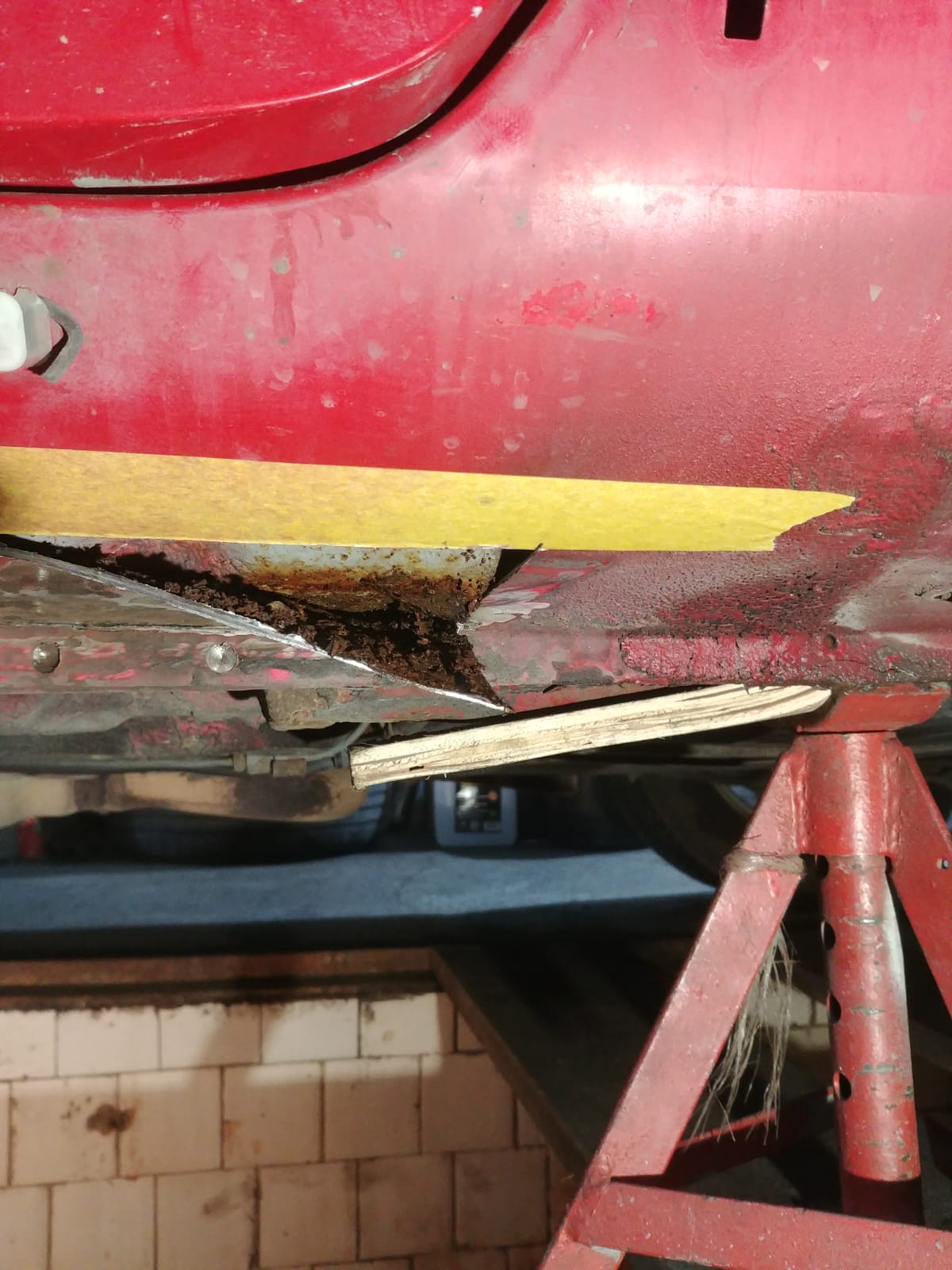 Widać też było, że ktoś wcześniej przykładał rękę do jednego z progów i to z całkiem niezłym skutkiem. Następnie oddałem dokładki progów do odbudowy, gdyż jedna z nich wyglądała tak.