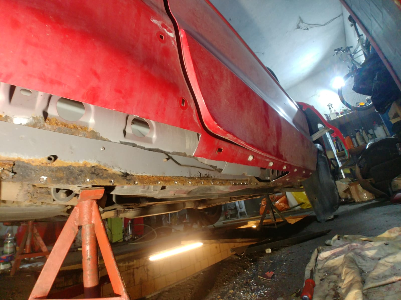 Z pozostałych rzeczy, to udało się znaleźć zapinki do poczków i niektóre zapięcia na nowo odtworzyć przez co boczki już nie latają w samochodzie jak chcą. Na koniec kilka fotek z odtworzonych progów i konserwacji: