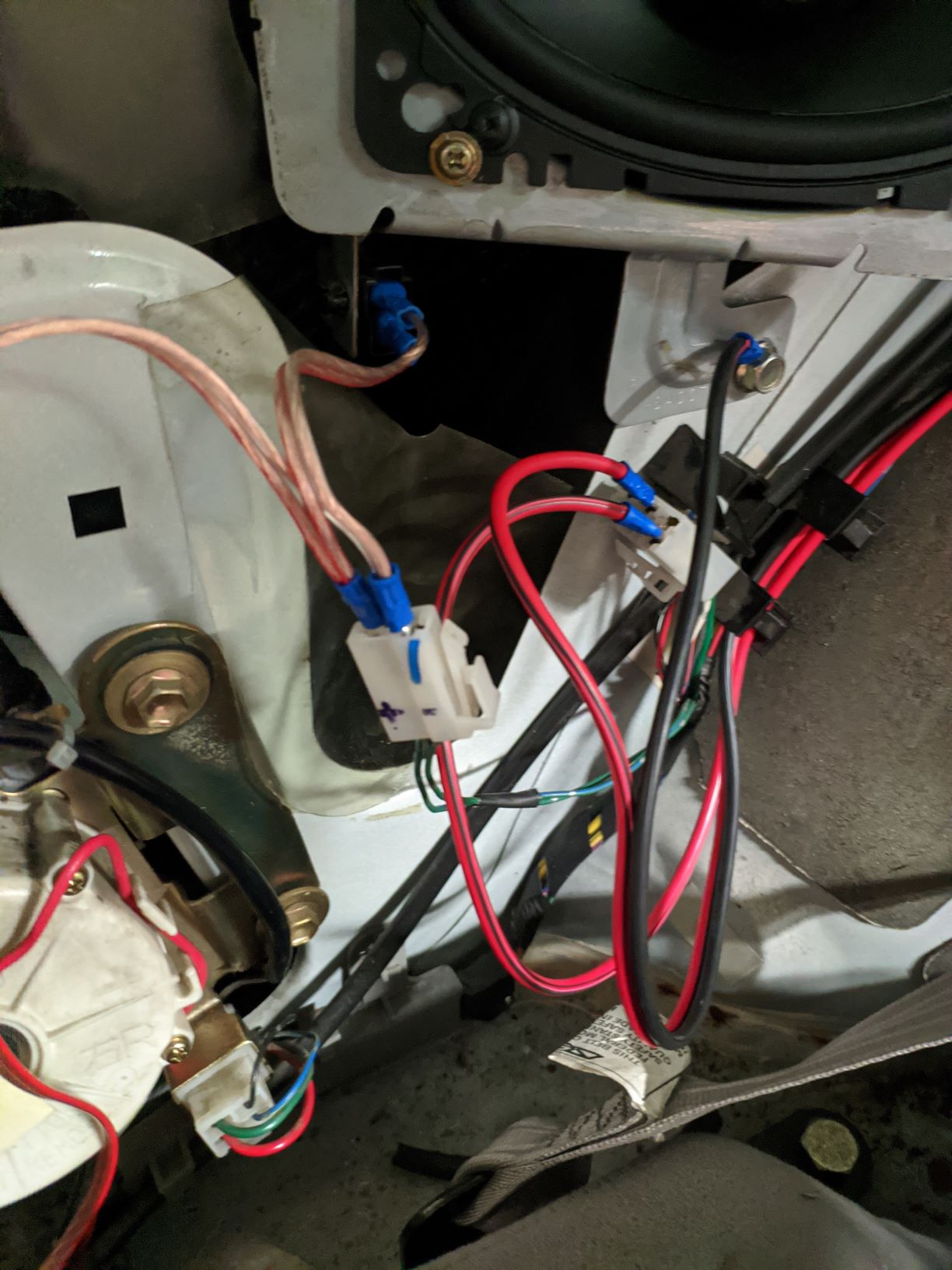W ręke zaciskarka i można robić kable które wpinamy do oryginalnej kostki głośnikowej i rozdzielamy sygnał na tył.