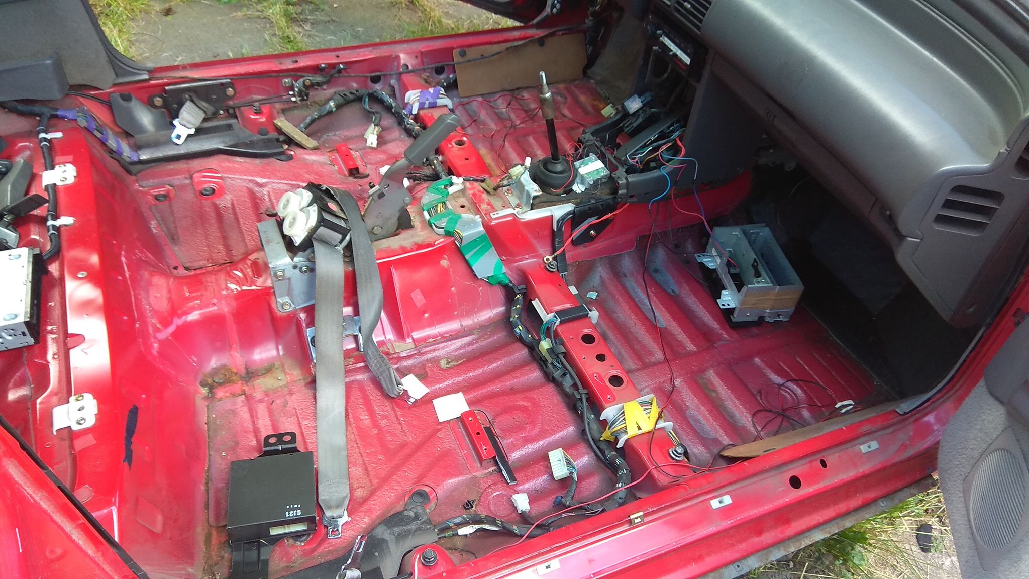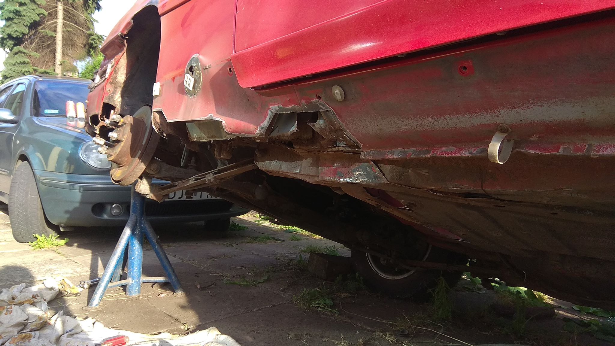 Na chwilę obecną wybebeszyłem środek żeby ocenić stan blacharski i je porządnie odczyścić, wymyłem podwozie i zacząłem robić prawą stronę. Powycinałem wszystkie rdzawki, wyczyściłem blachę na tyle ile się dało i wszystko przeleciałem środkiem Forch l237 pod ciśnieniem. Po spawaniu pójdzie masa poliuretanowa na zabezpieczenie łączeń blach, epoksyd i masa bitumiczna. Miejmy nadzieję że ze dwa lata wytrzyma