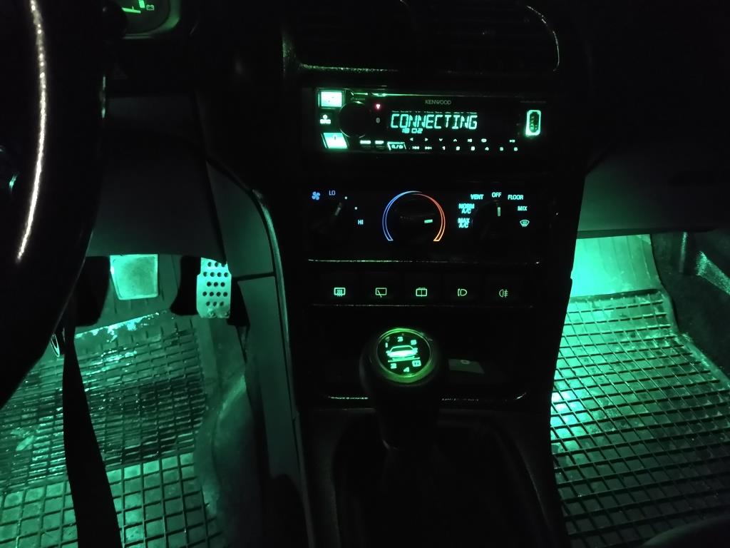 Radio Kenwood ze zmiennym podświetleniem ustawione na zielony, najbardziej zbliżony do ledów.
