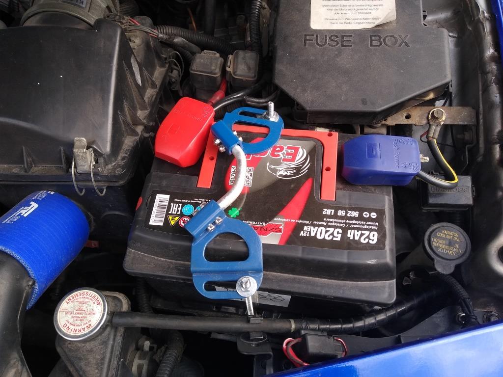 NA blendę czerwonego wpadła nalepka GT. Zastanawiam się nad odcieniem, czy na pewno ten... W niebieskim mocowanie akumulatora i klemy szybkiego montażu. Silnik już dotarty, dziś machnąłem ponad 200 km i jest git. Po założeniu dystansów lepiej trzyma się zakrętów.
