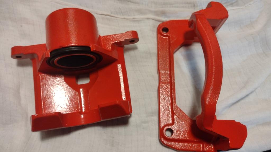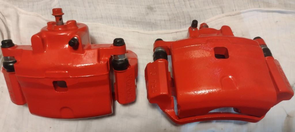 Jako że nie udało się znaleźć zacisków od MPSa, to postanowiłem wstawić od Mazdy 6GH na przód. Wypiaskowane, pomalowane i wstawione nowe tłoczki. Jeszcze chwila i będę przekładał. Tarcze 299mm już czekają.