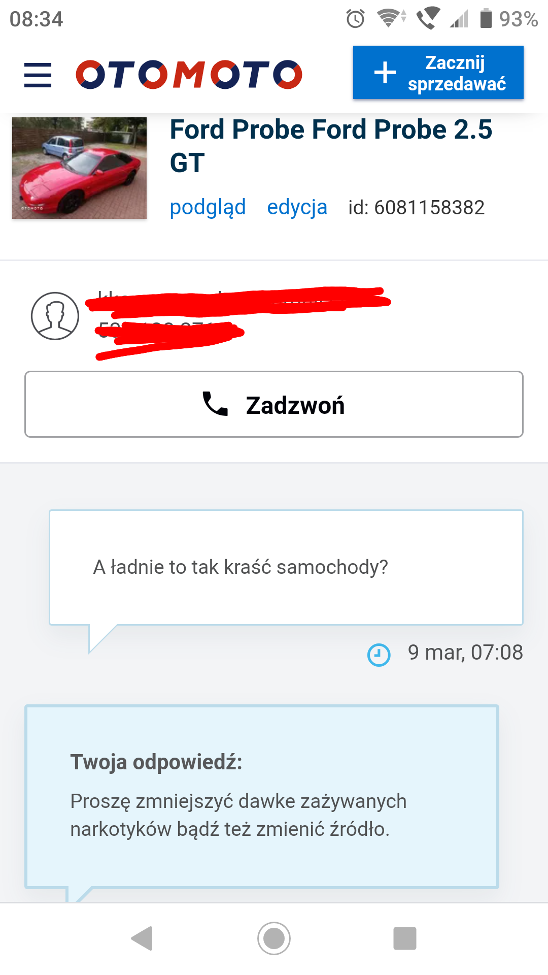 Ostatnio dostałem wiadomość na otomoto odnośnie czerwonego probe... Dobrze że odrazu nie przyjechała z policją po swoje auto...