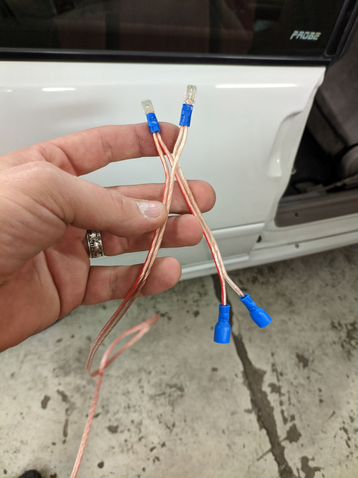 W ręke zaciskarka i można robić kable które wpinamy do oryginalnej kostki głośnikowej i rozdzielamy sygnał na tył.