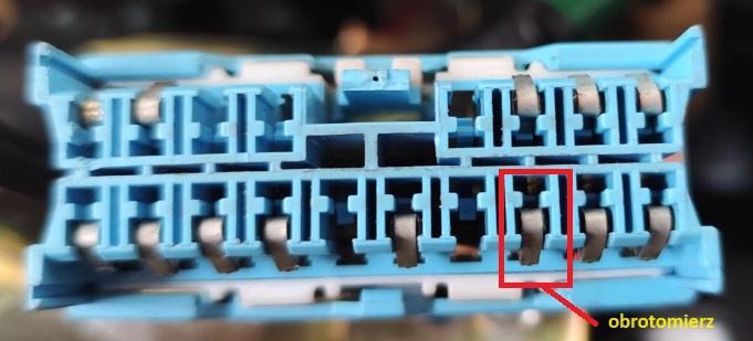 - sygnał dla obrotomierza przychodzi do dużej niebieskiej złączki przy zegarach żółto-niebieskim kablem