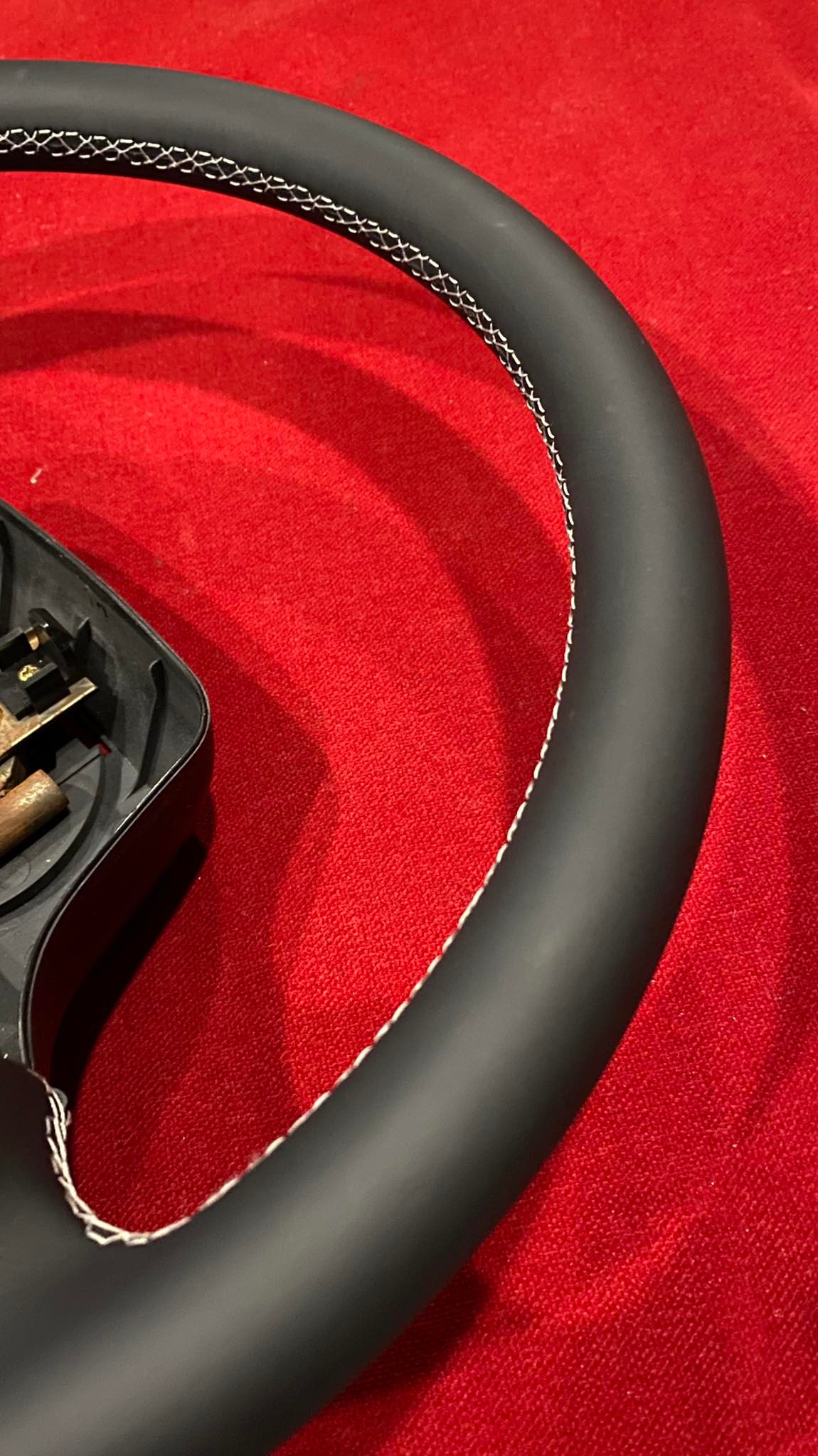 Taki malutki "modzik" Obszycie kierownicy nową skórą + szara nić.