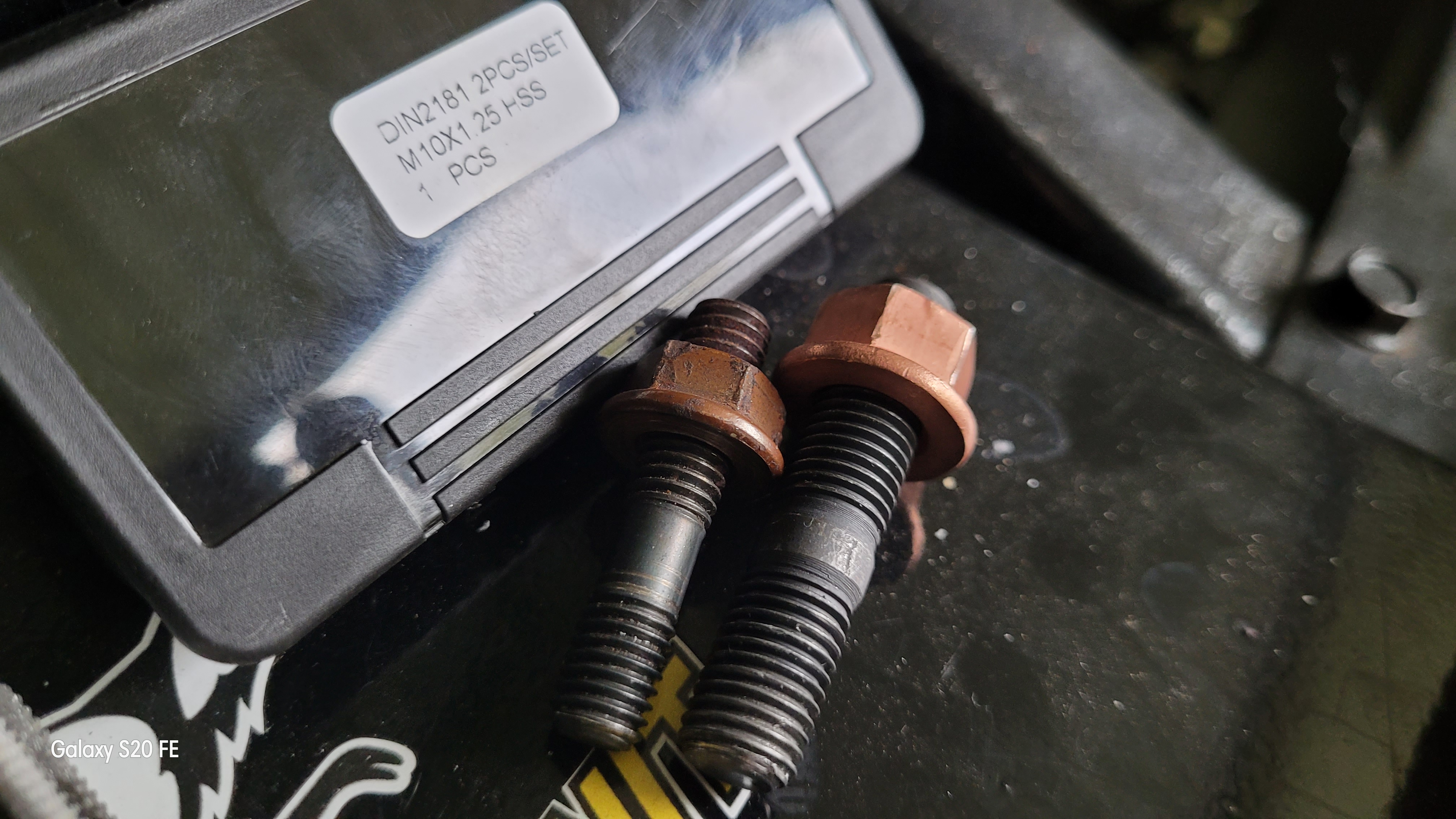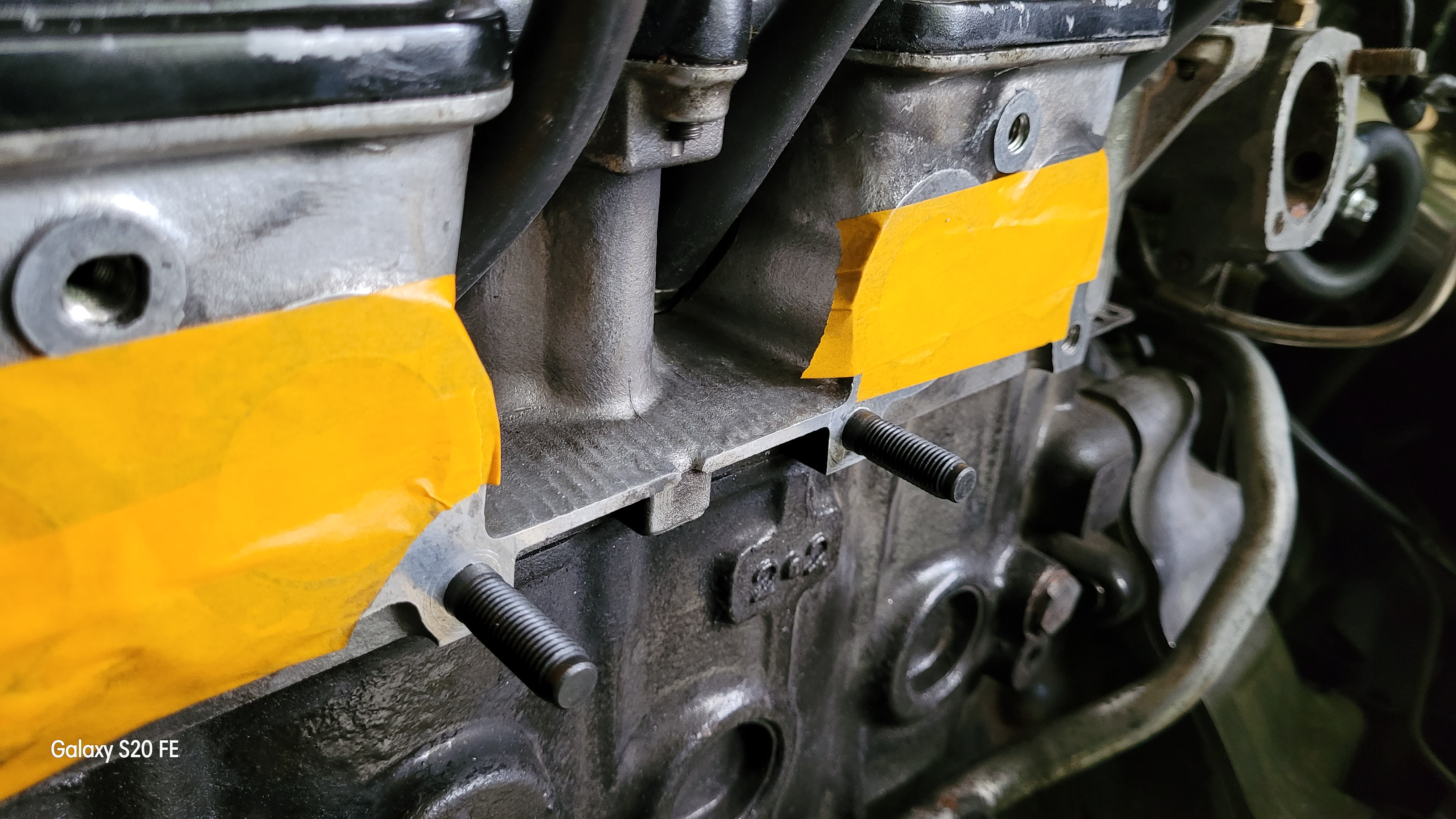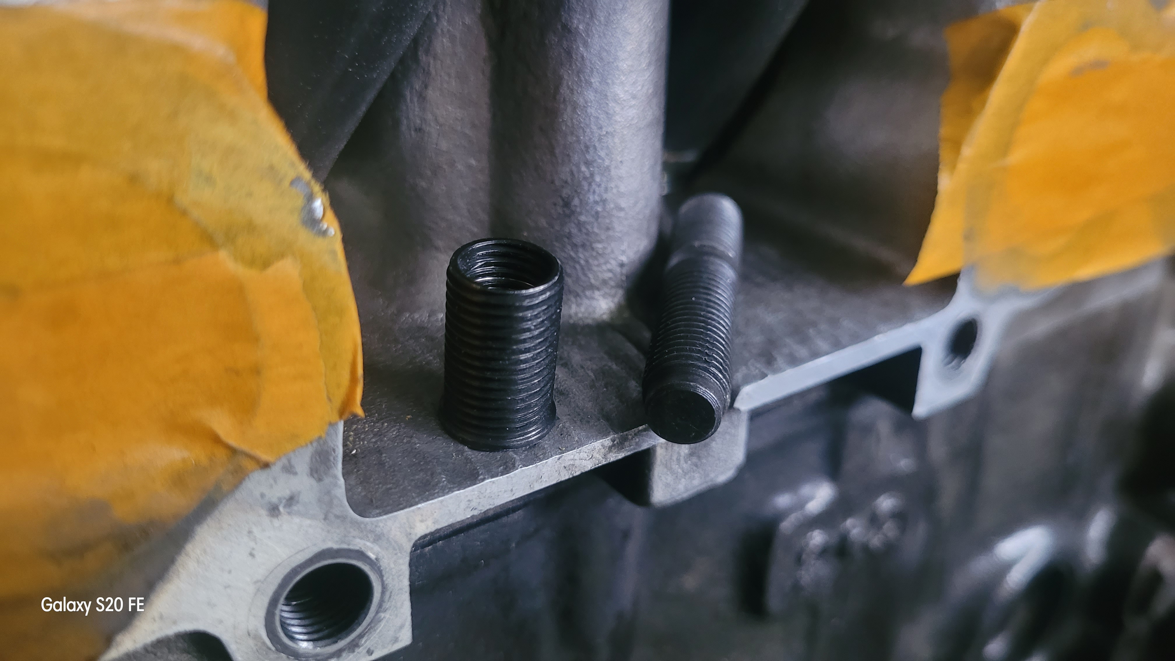 - zmienione szpilki kolektora wydechowego w głowicy. Otwory rozwiercone pod gwint M12, założone na kleju wkładki do naprawy gniazd świec żarowych M12×M10 i osadzone na klej szpilki M10x1.25 10.9.