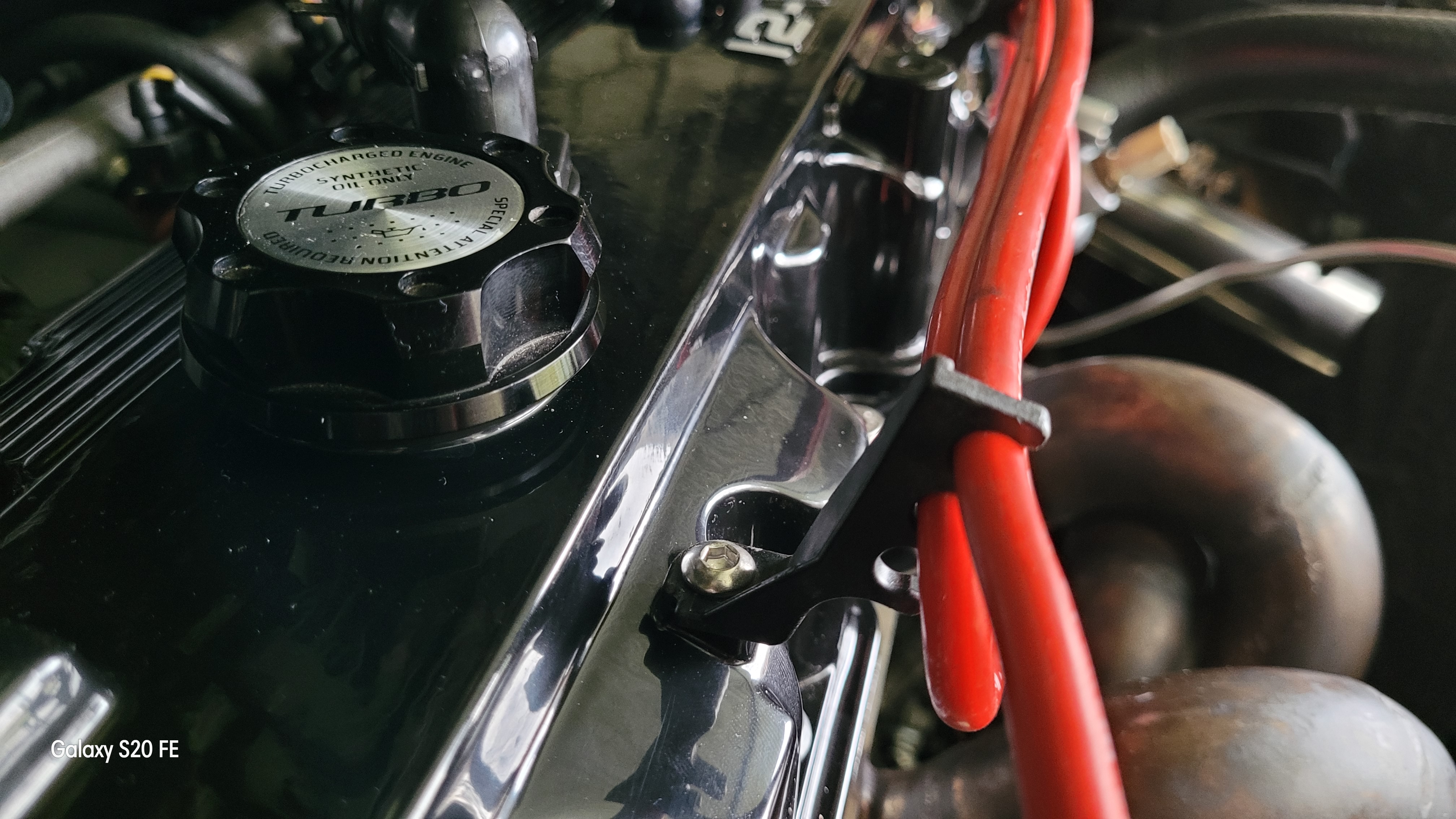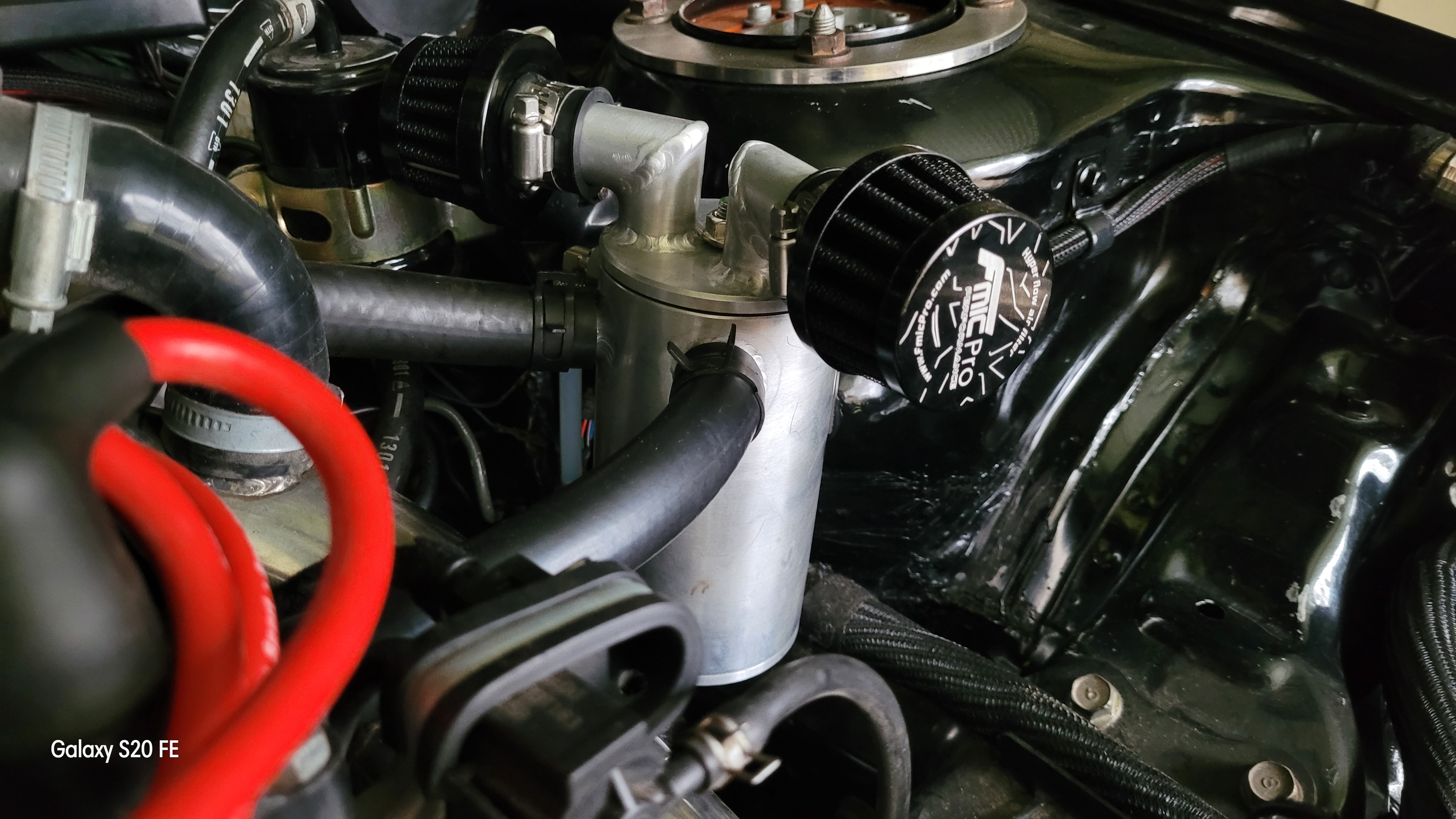 - przerobiony układ odmy. Dwa duże 20mm wyjścia z pokrywy zaworów do podwójnego catch tanka Properfekt z dwoma filtrami