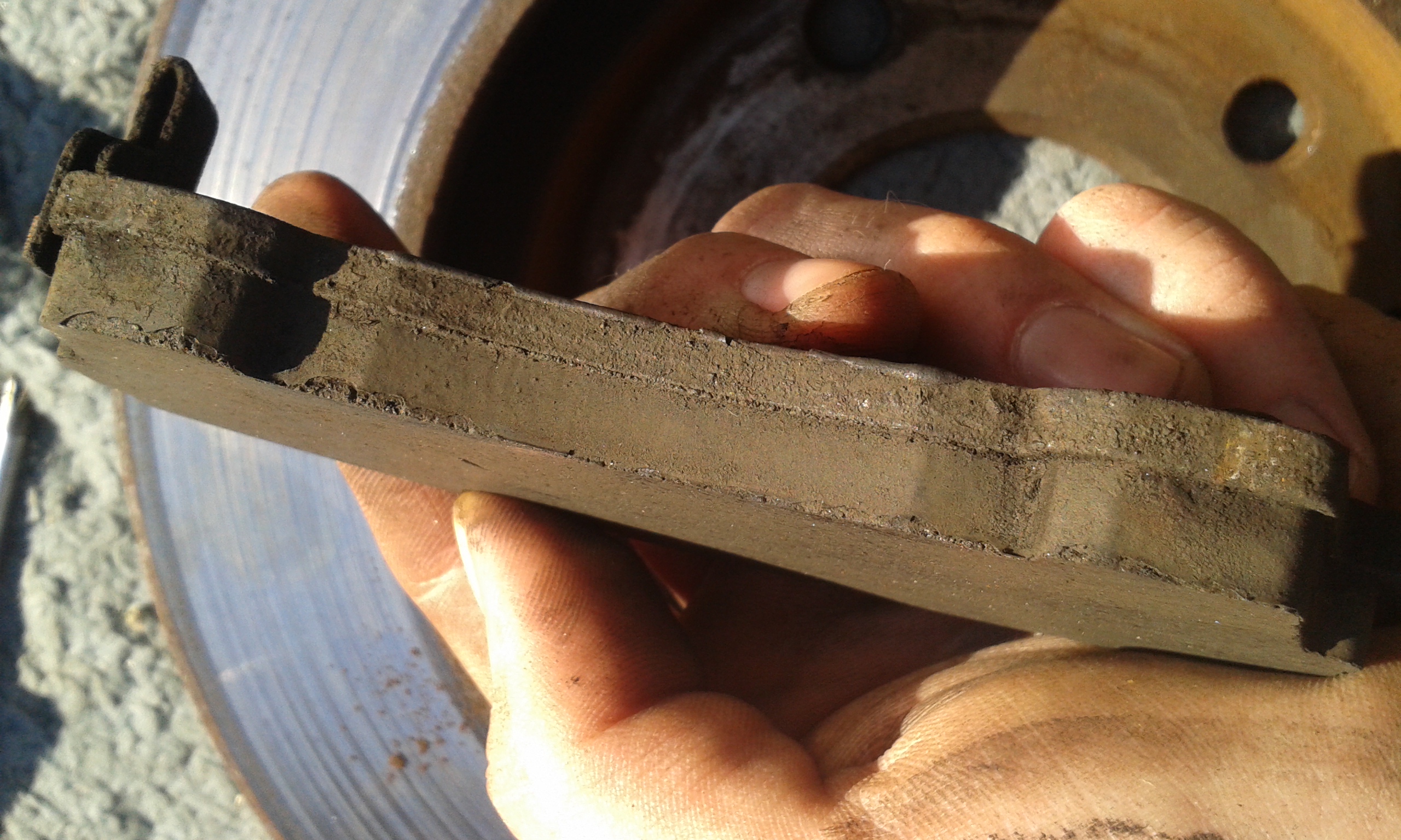 Wewnętrzny klocek z prawej strony, ten przyciskany przez tłoczek, obciera mi tarcze i dlatego znosi mnie na prawo. (tak mi się przynajmniej wydaję że to przyczyna)